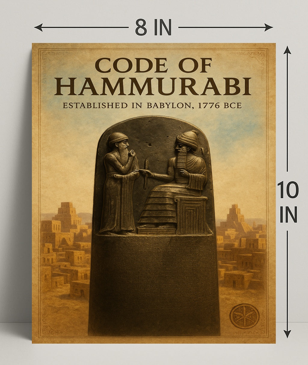 - Historical Significance: This poster represents the ancient Code of Hammurabi, one of the earliest sets of laws, making it a meaningful piece for history buffs.