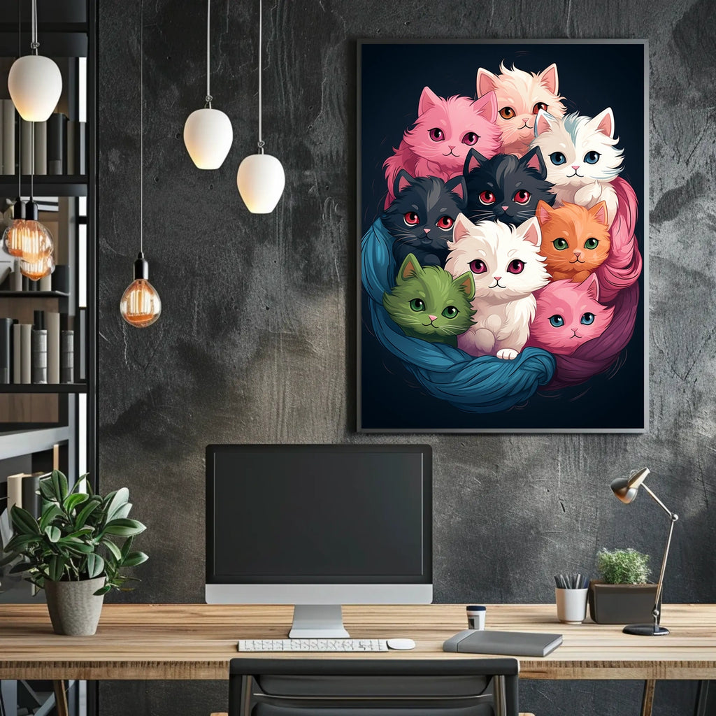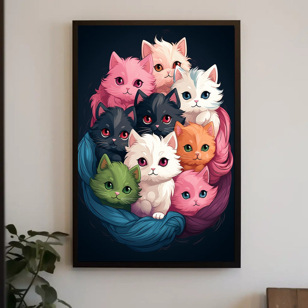 Colorful Kittens In A Cozy Nest Poster brings whimsy and warmth to walls everywhere. This art print blends playful kittens with a snug nest scene, offering a cheerful focal point for homes, studios, or gift-worthy spaces. Designed for decor lovers and wanderlust spirits, it adds charm and a hint of adventure to any room.