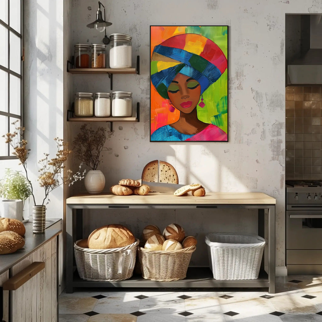 This colorful poster makes a bold statement whether used as a single centerpiece or part of a gallery wall—perfect for those seeking vibrant wall art and eclectic, diverse art prints. Order your PosterGoat Colorful Woman Illustration today and transform your space with radiant color and timeless elegance.