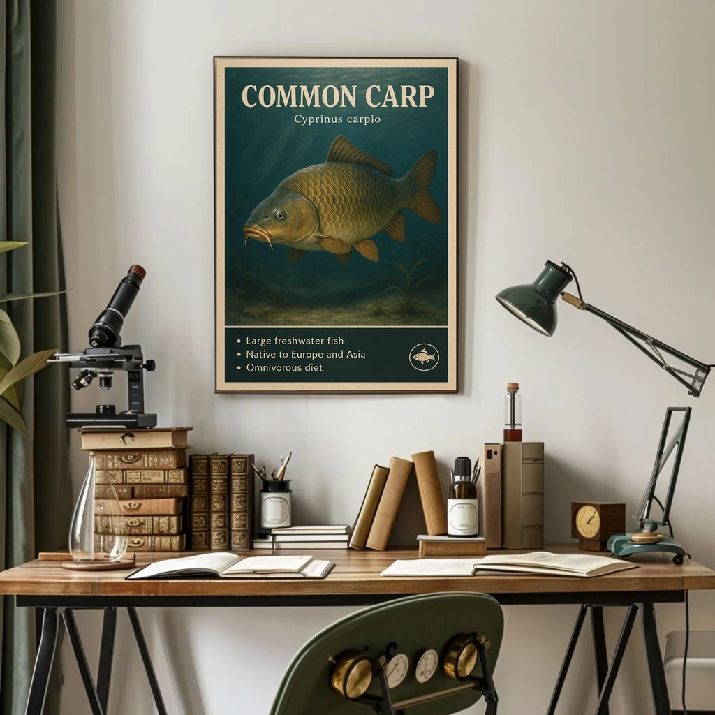 This poster captures the calm charm of the Common Carp (Cyprinus carpio) with scenery you’ll love to look at every day. It’s crafted for decor lovers and wanderers who want a hint of real-world beauty without leaving home. The artwork blends watercolor softness with digital painting detail, giving a timeless, gallery-ready vibe that fits living rooms, bedrooms, or home offices. Easy to swap with other posters, it adds color, texture, and a touch of nature to any wall.
