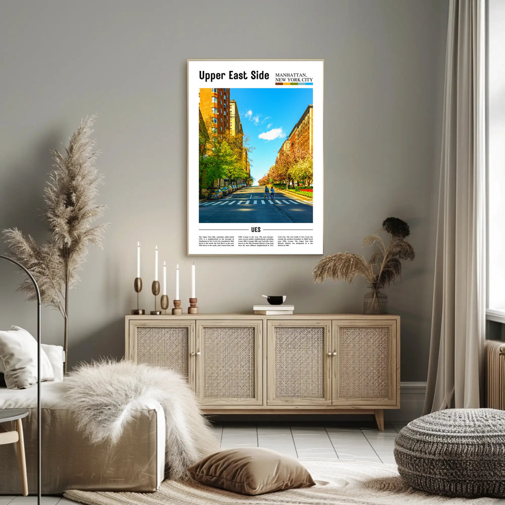 Perfect for city enthusiasts: Celebrates New York City, Manhattan, and the Upper East Side—ideal for travel lovers and fans of urban wall decor.