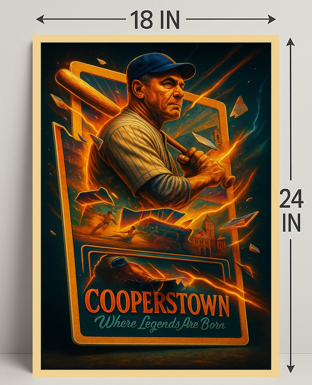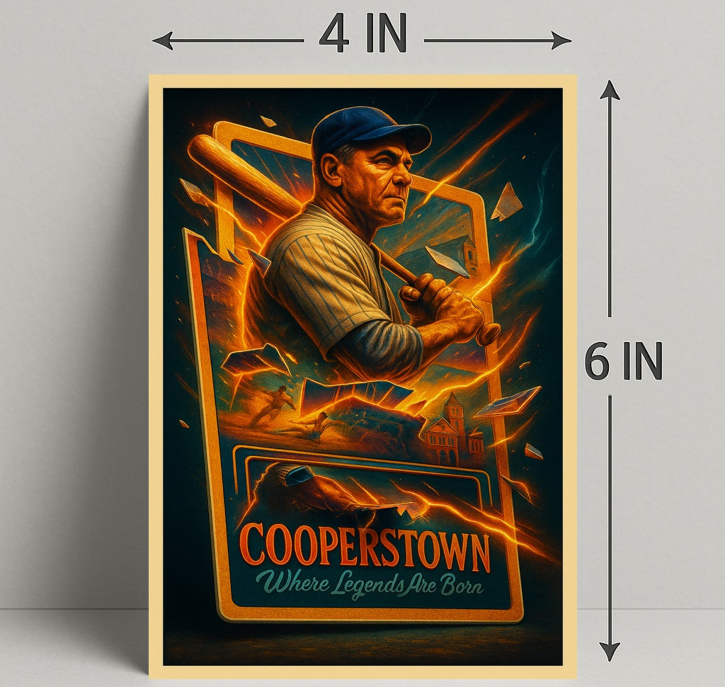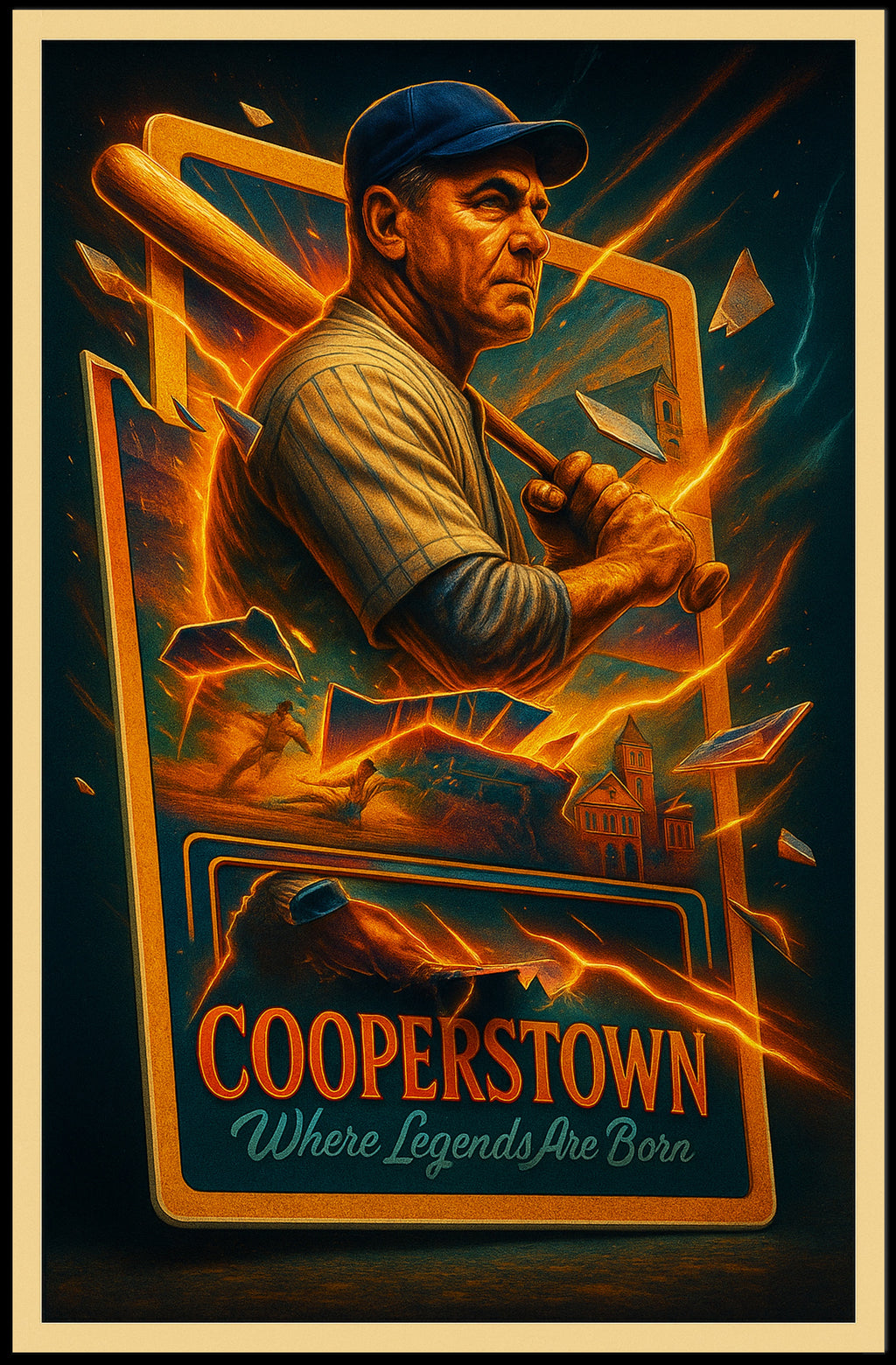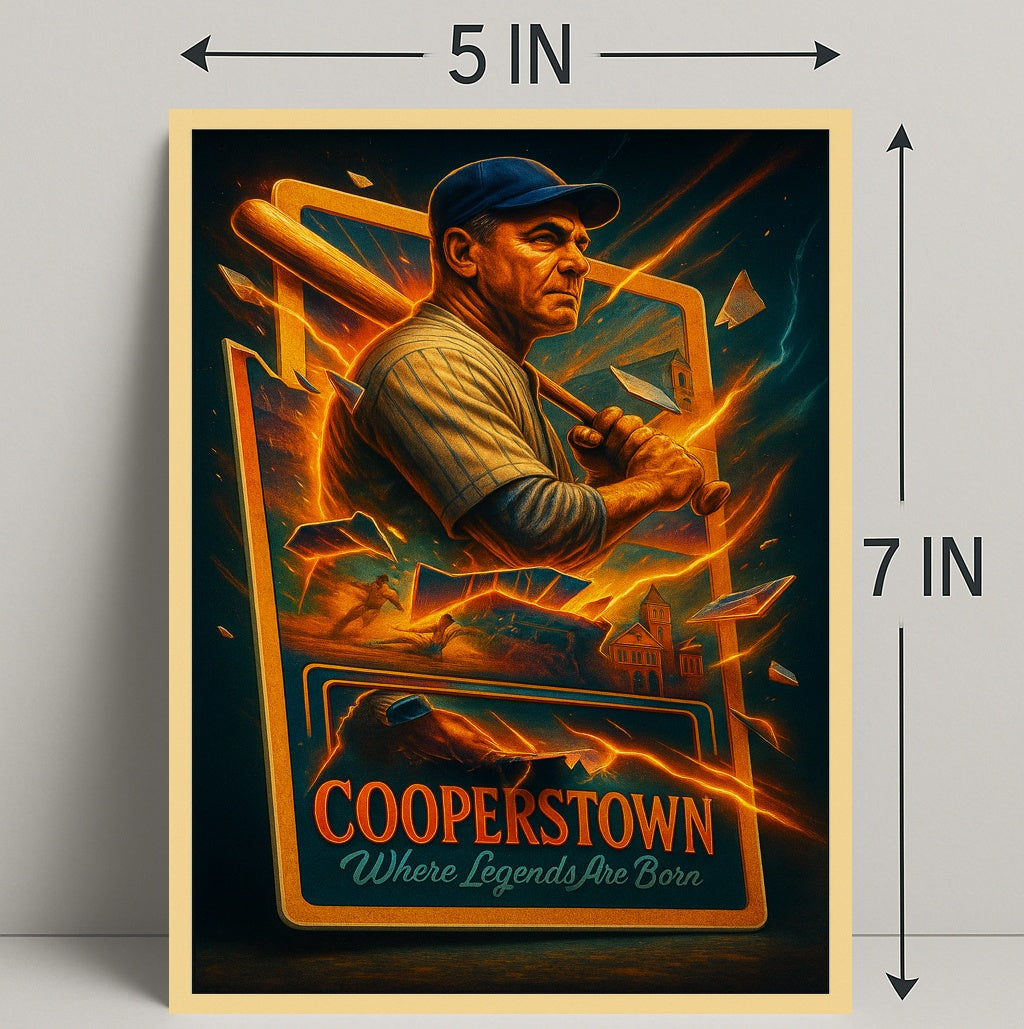 - Iconic design: Dramatic portrait composition with dynamic lighting and shattered-card motifs that celebrate Cooperstown’s legendary status.