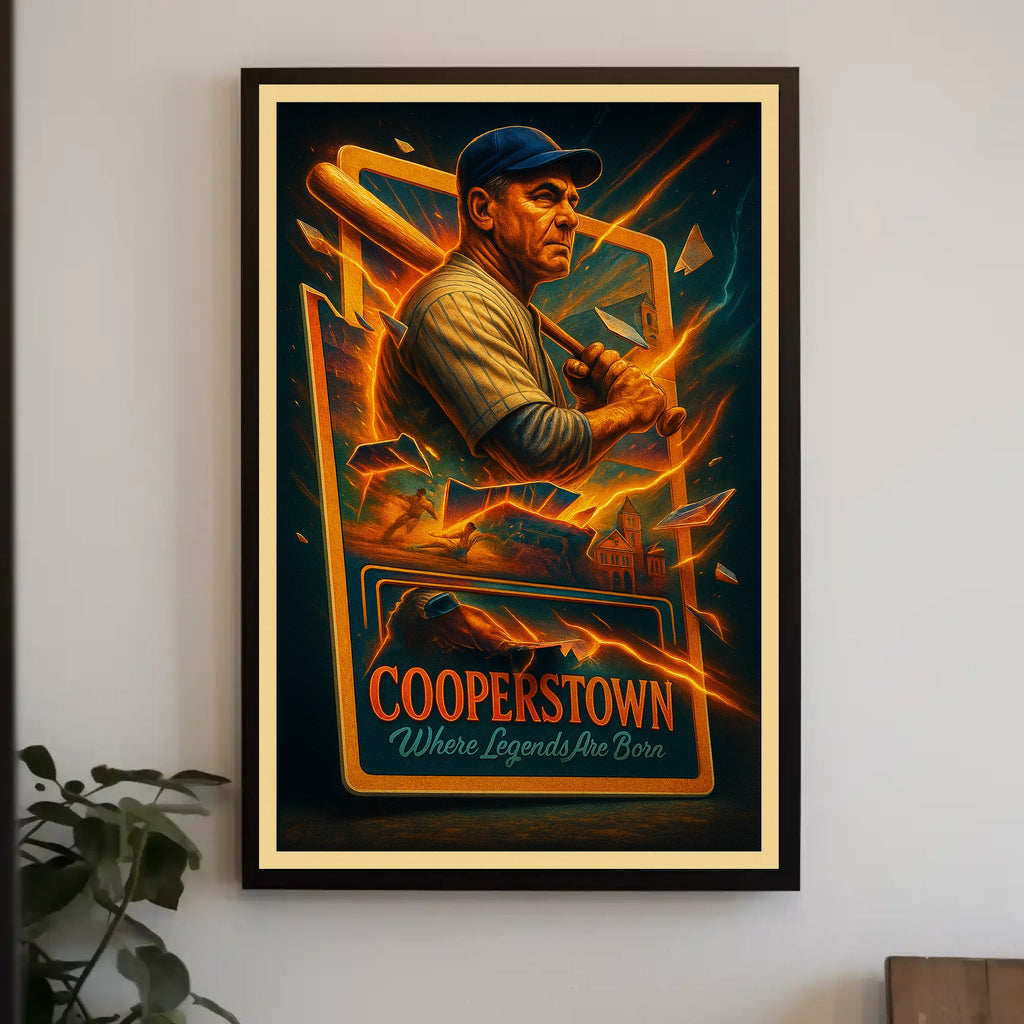 Whether you're hunting for a souvenir-like keepsake or a standout decorative piece, the Cooperstown Legends Are Born Wall Art Print is a memorable gift for baseball enthusiasts and collectors alike. Add this PosterGoat original to your cart now and celebrate the place where legends are born.