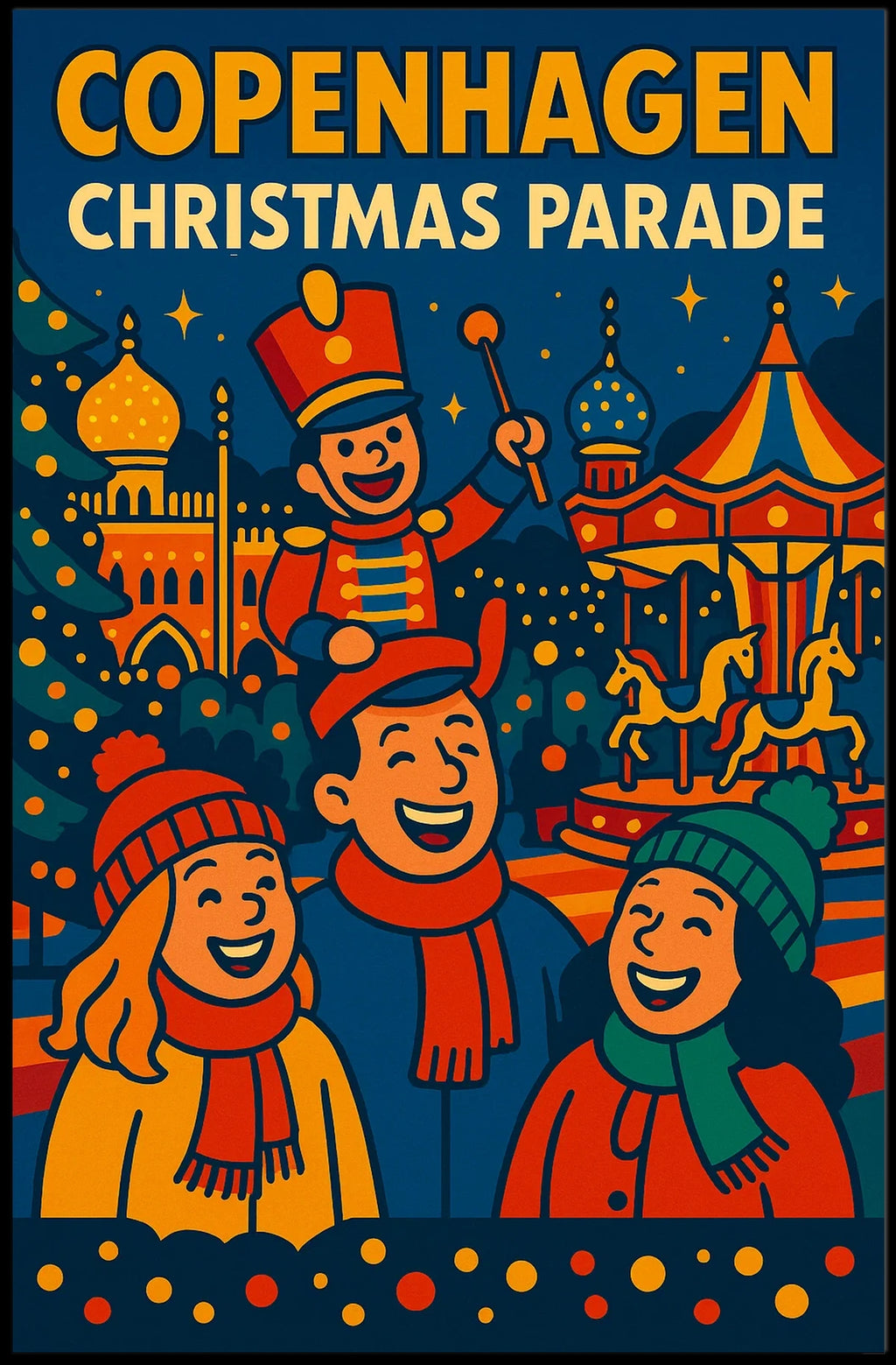 - Detailed design highlighting the festive Copenhagen parade scenery and holiday ambiance