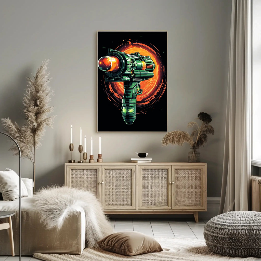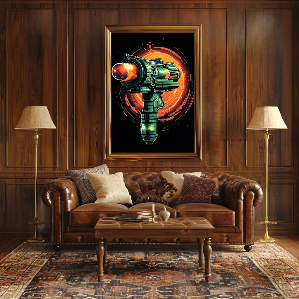 Capture the essence of Cosmic Blaster with this evocative poster that blends real-world scenery with a cosmic twist. Designed for decor lovers and wanderlust spirits, it brings a touch of adventure and charm to any room.