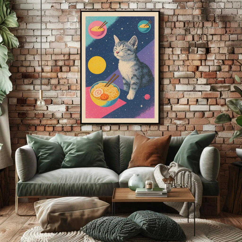 - Printed with precision and made to inspire, this artwork is more than decoration—it’s a conversation piece that connects whimsy, culture, and style. Bring Cosmic Cat And Ramen Dreams into your home, classroom, or office today and let your walls tell a powerful story.