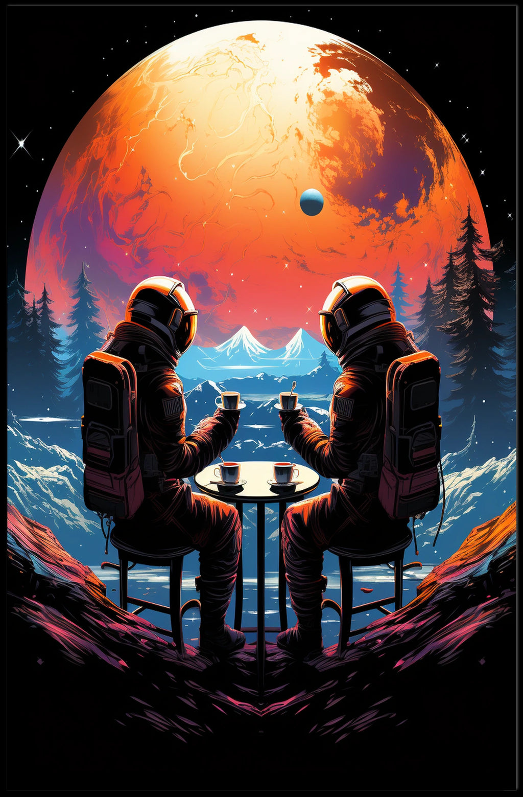 Discover the Cosmic Coffee Break Poster, a stylish art print that blends celestial wonder with real-world scenery. Designed for decor lovers and wanderlust spirits, it adds a playful, aspirational touch to any room—perfect for homes, offices, and creative spaces. This wall art is ready to spark conversation and inspire daily moments of curiosity.