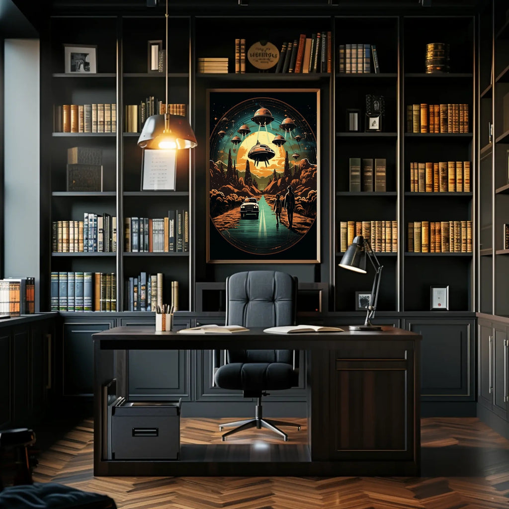 Ride the intersection of imagination and real-world scenery with the Cosmic Encounter on the Open Road Poster. This art print fuses celestial wonder with familiar landscapes to spark wanderlust and elevate any room. Ideal for decor lovers and seekers of inspiration, it adds a dreamy, motivational vibe to living spaces, studios, or hallways.