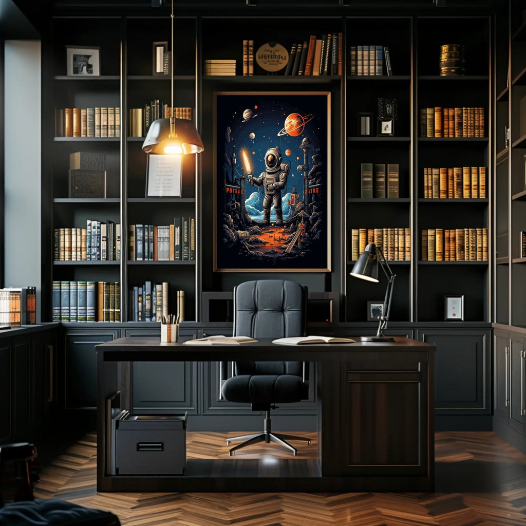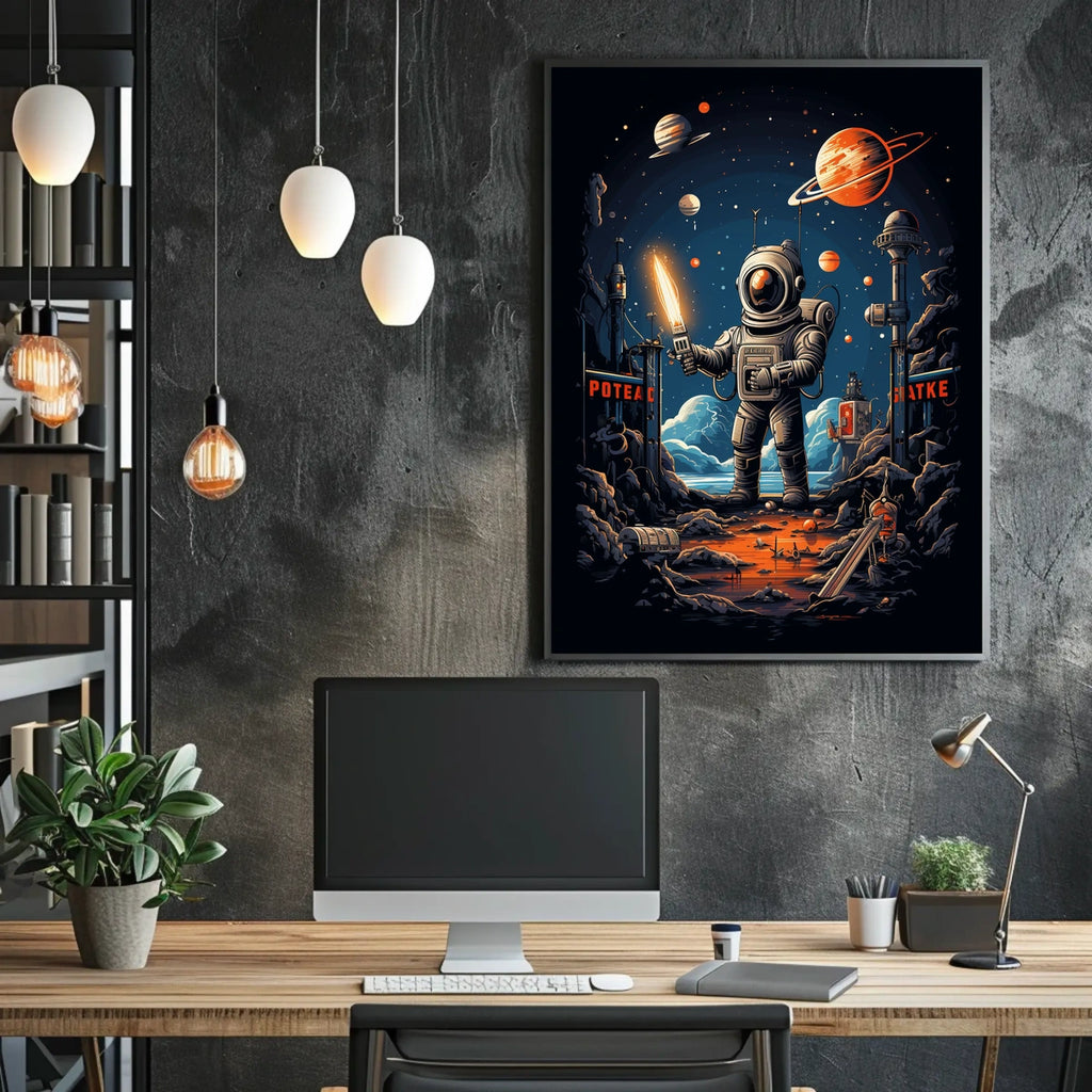 Bring a sense of exploration to your space with this versatile poster. Its timeless design pairs with modern or eclectic interiors, making it a smart, affordable way to refresh a room. Add the Cosmic Explorer Poster to your cart now and transform your walls with celestial charm.
