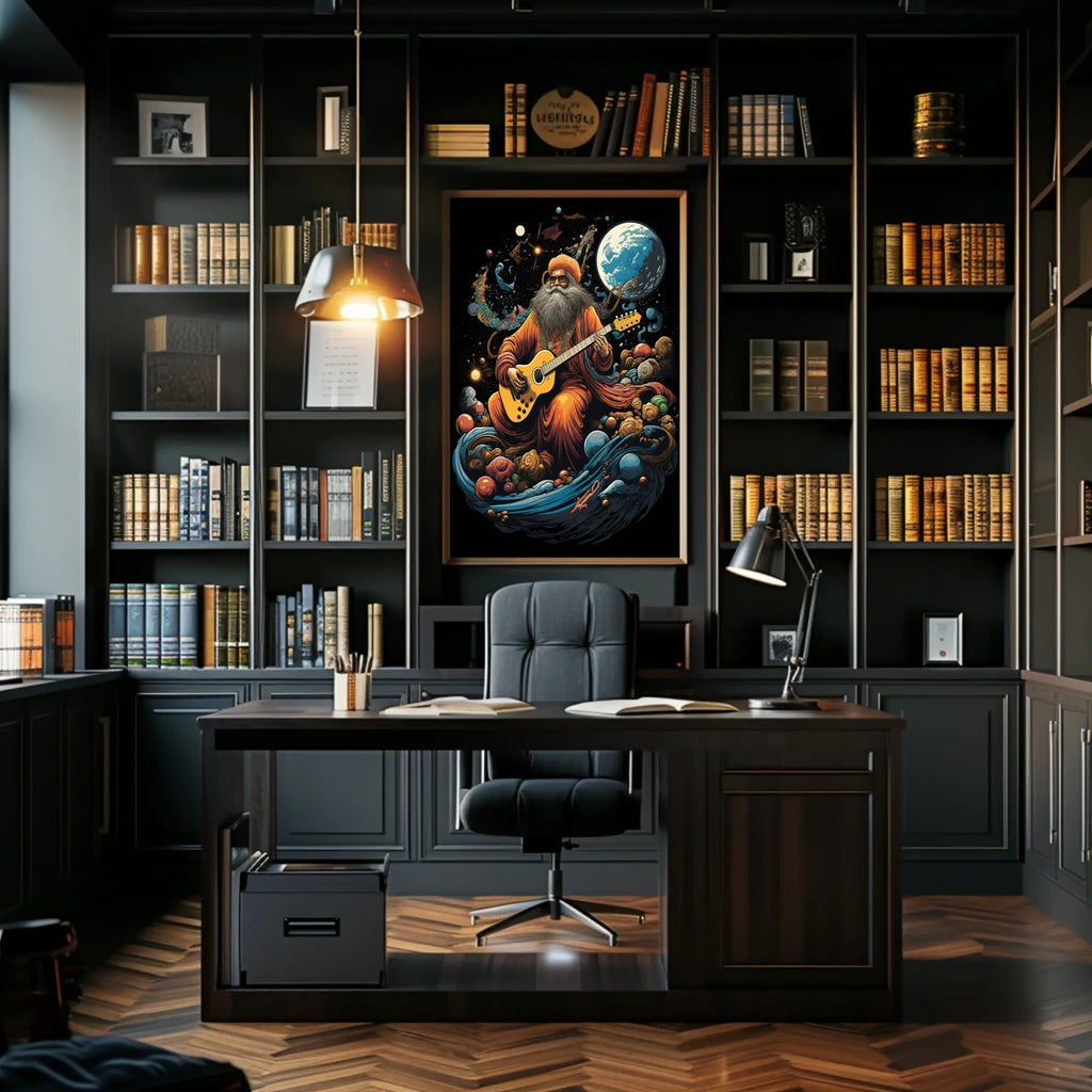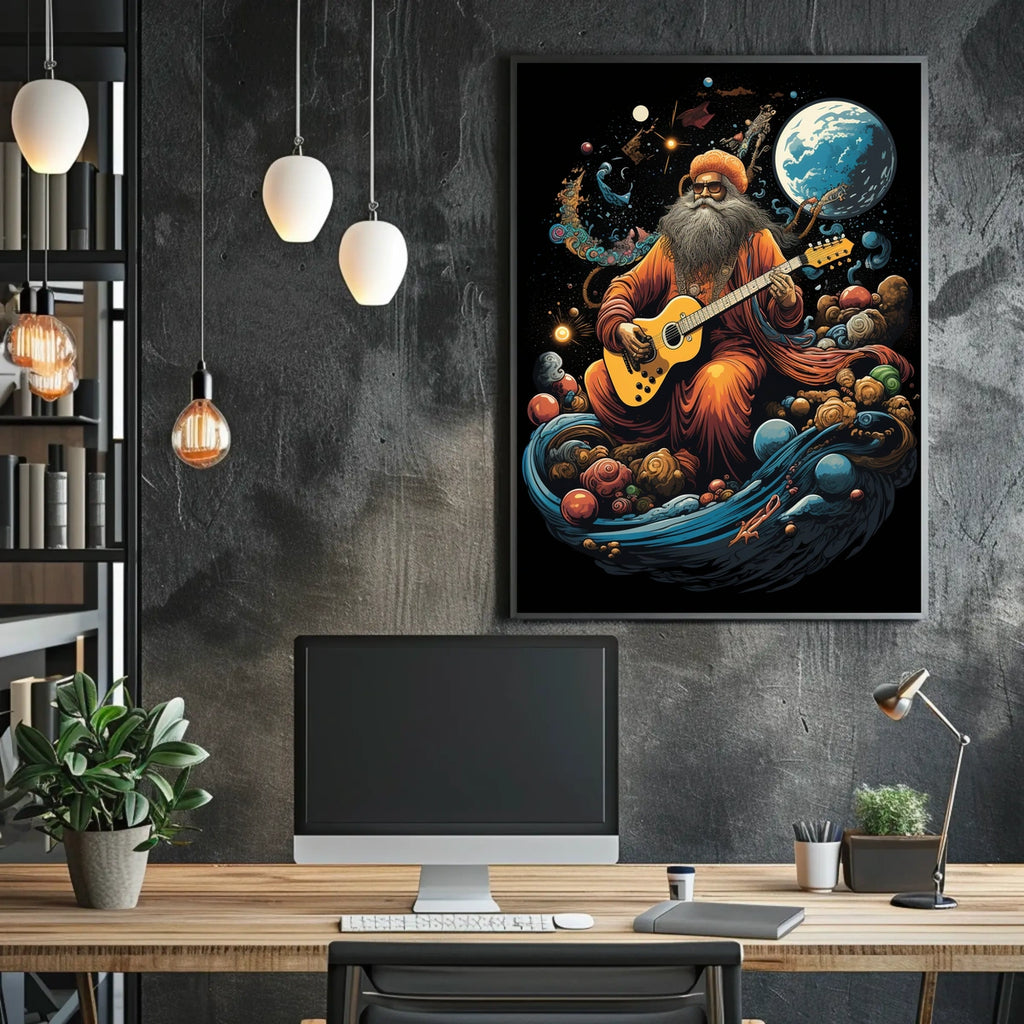 This poster adds charm, inspiration, and a sense of wonder to any wall. It pairs beautifully with other celestial or nature-inspired wall art, creating a cohesive gallery vibe. Ready to elevate your space? Add to cart now and let the cosmic guitarist lead the mood.