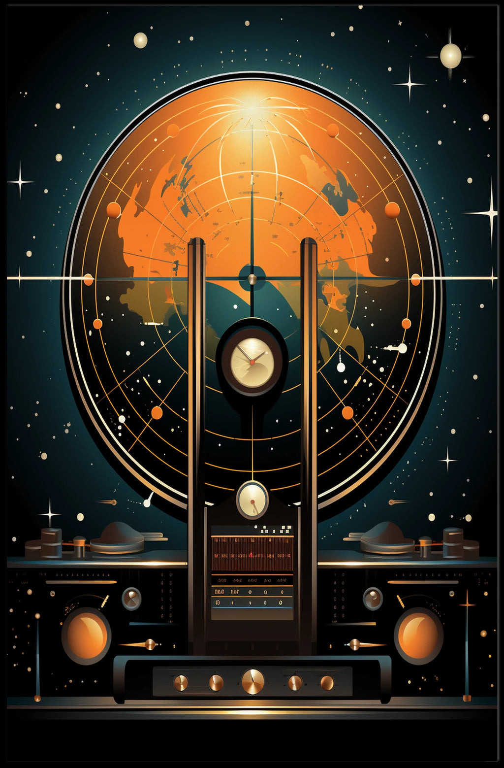 The Cosmic Radio Poster captures a dreamlike fusion of celestial wonder and real-world scenery. Designed for decor lovers and wanderlust spirits, this art print brings charm to any room with a mood that invites curiosity and calm.