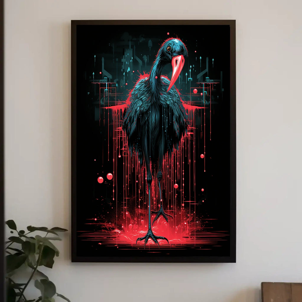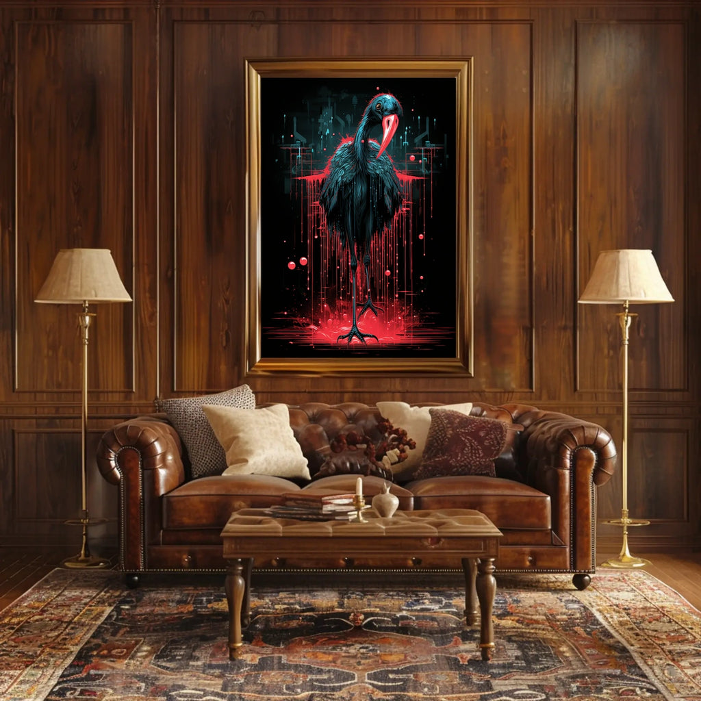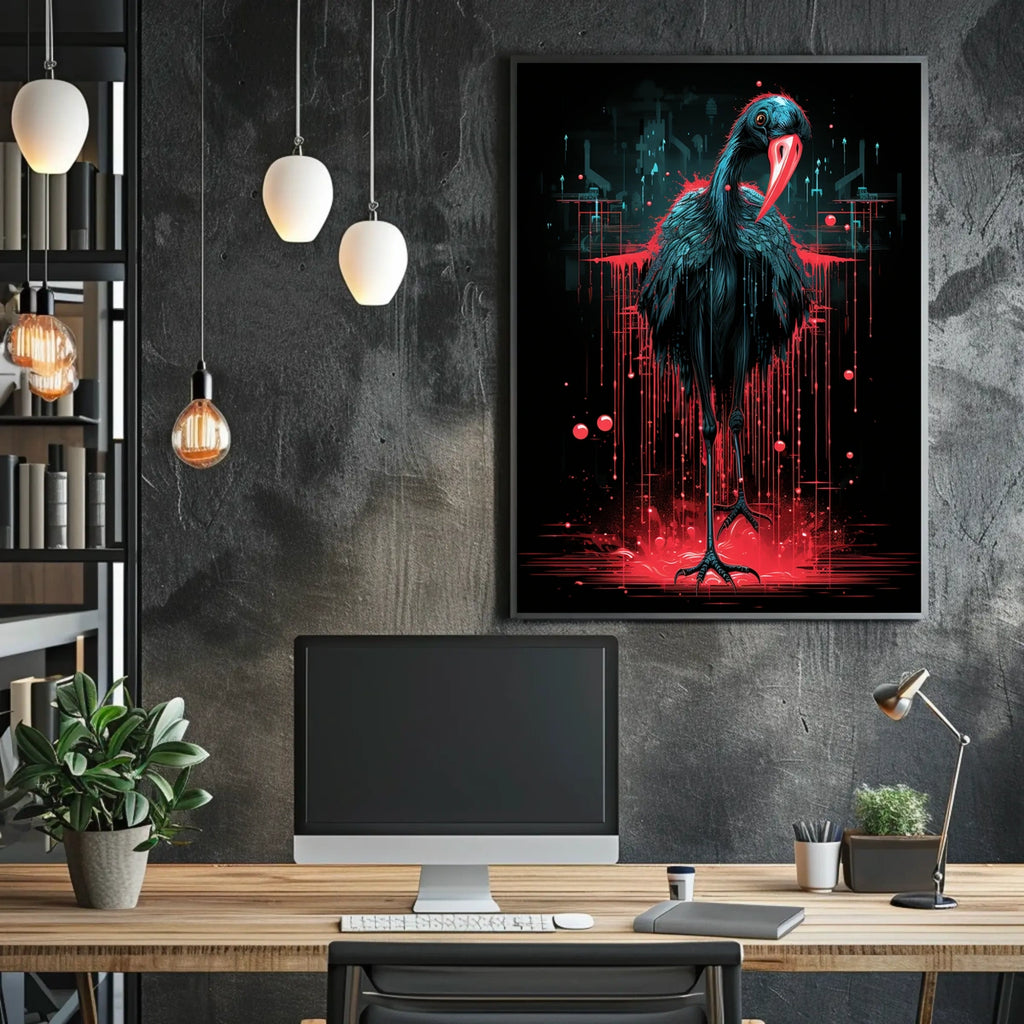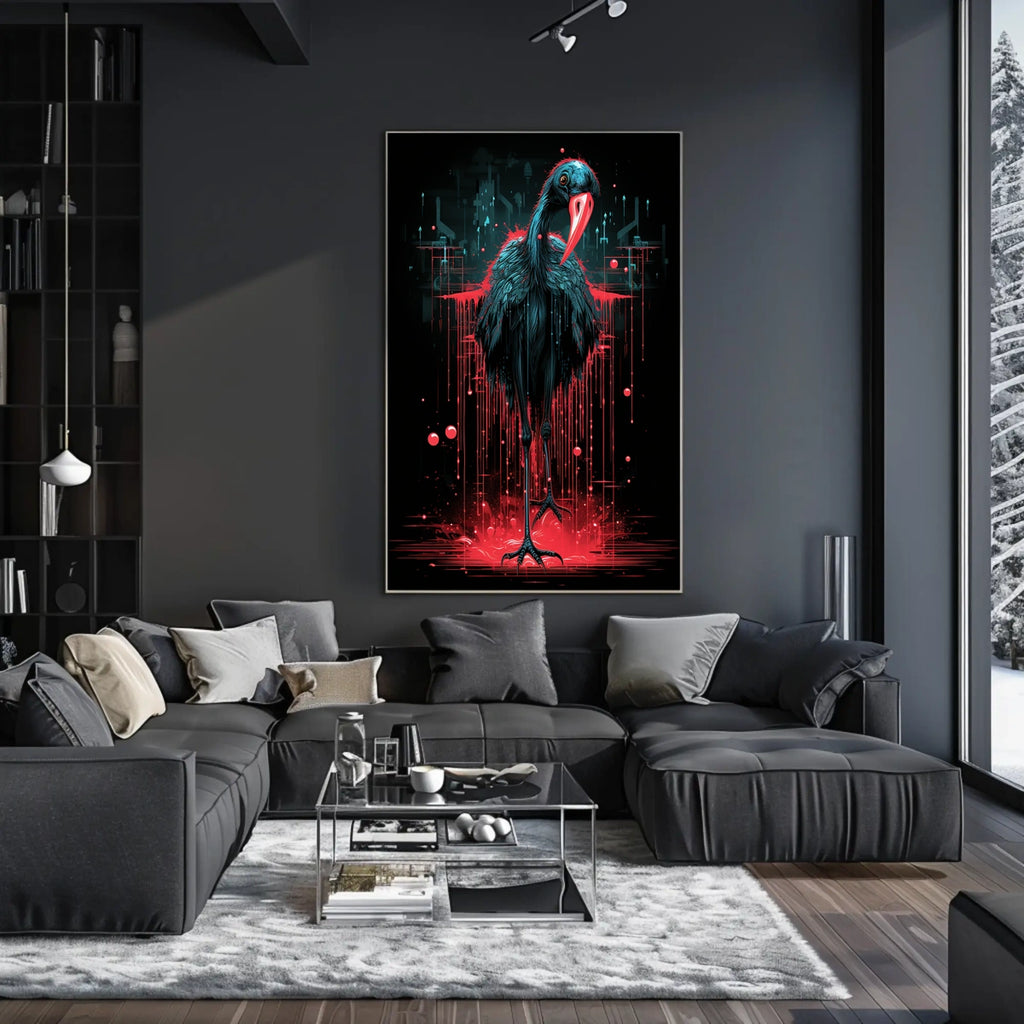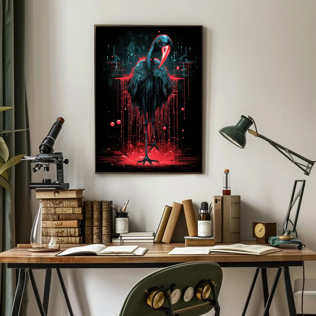 Crimson Sentinel is a captivating artwork where nature meets the digital frontier. This striking piece blends vivid colors with intricate detail to create a mesmerizing vision of a futuristic avian guardian, designed to spark curiosity and elevate any living or work space.