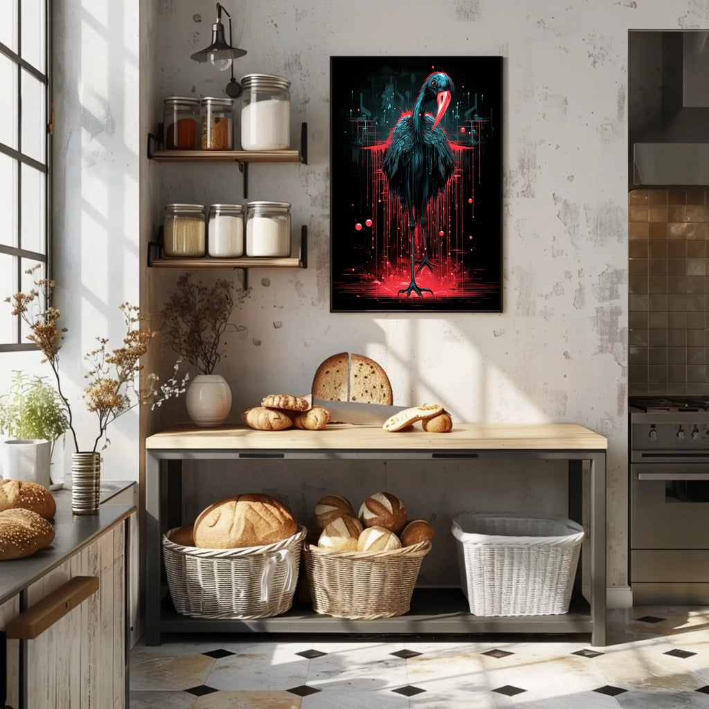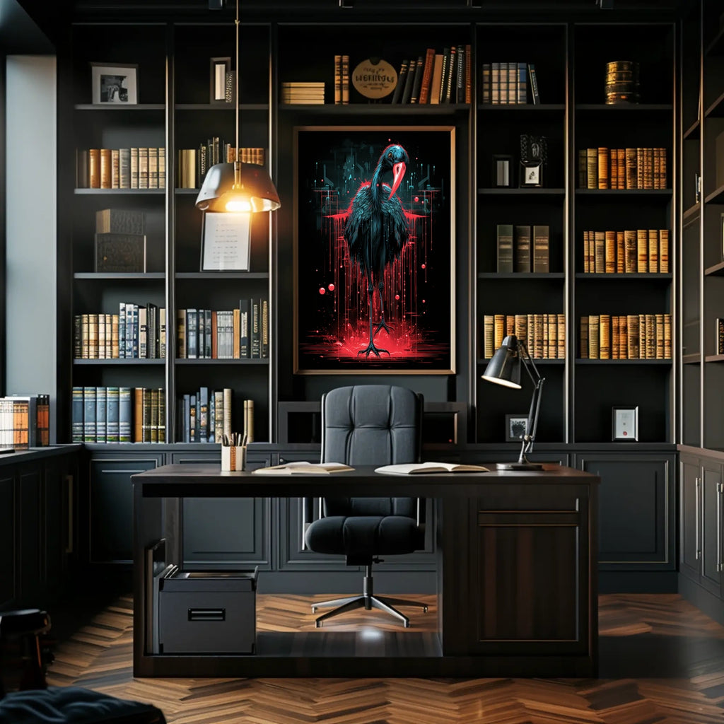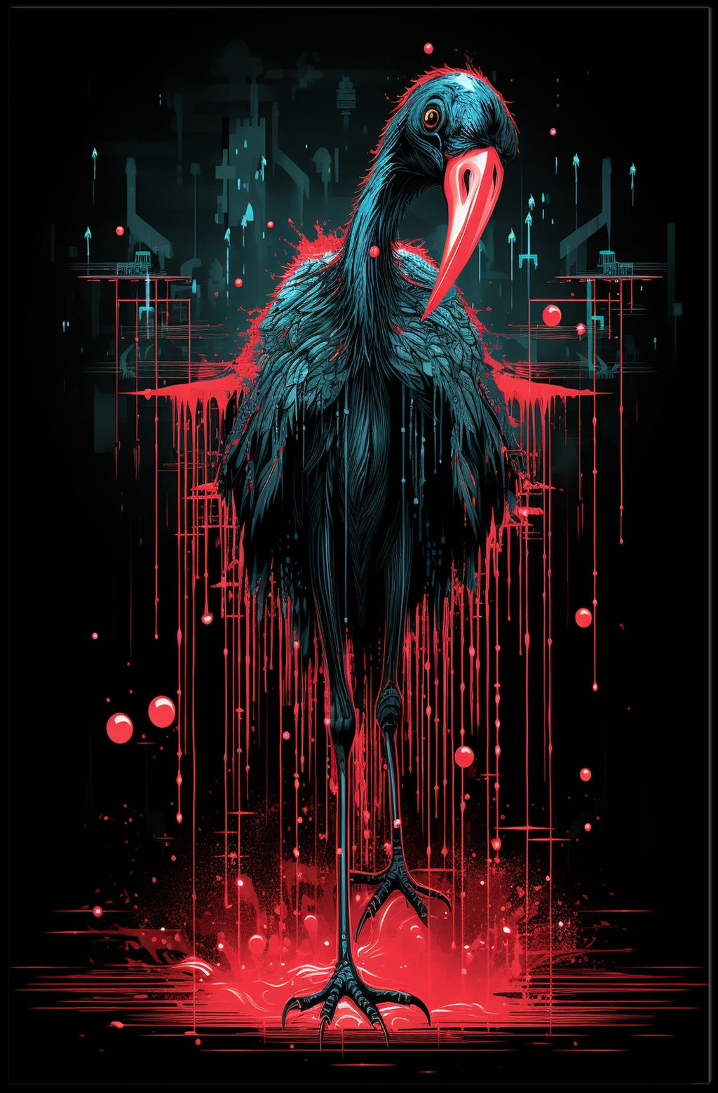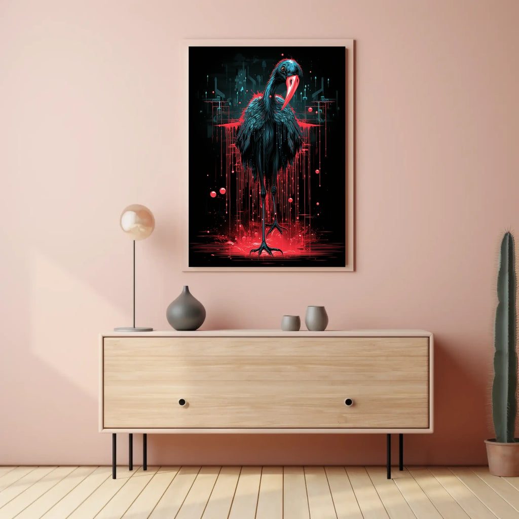 Crimson Sentinel is a captivating artwork where nature meets the digital frontier. This striking piece blends vivid colors with intricate detail to create a mesmerizing vision of a futuristic avian guardian, designed to spark curiosity and elevate any living or work space.