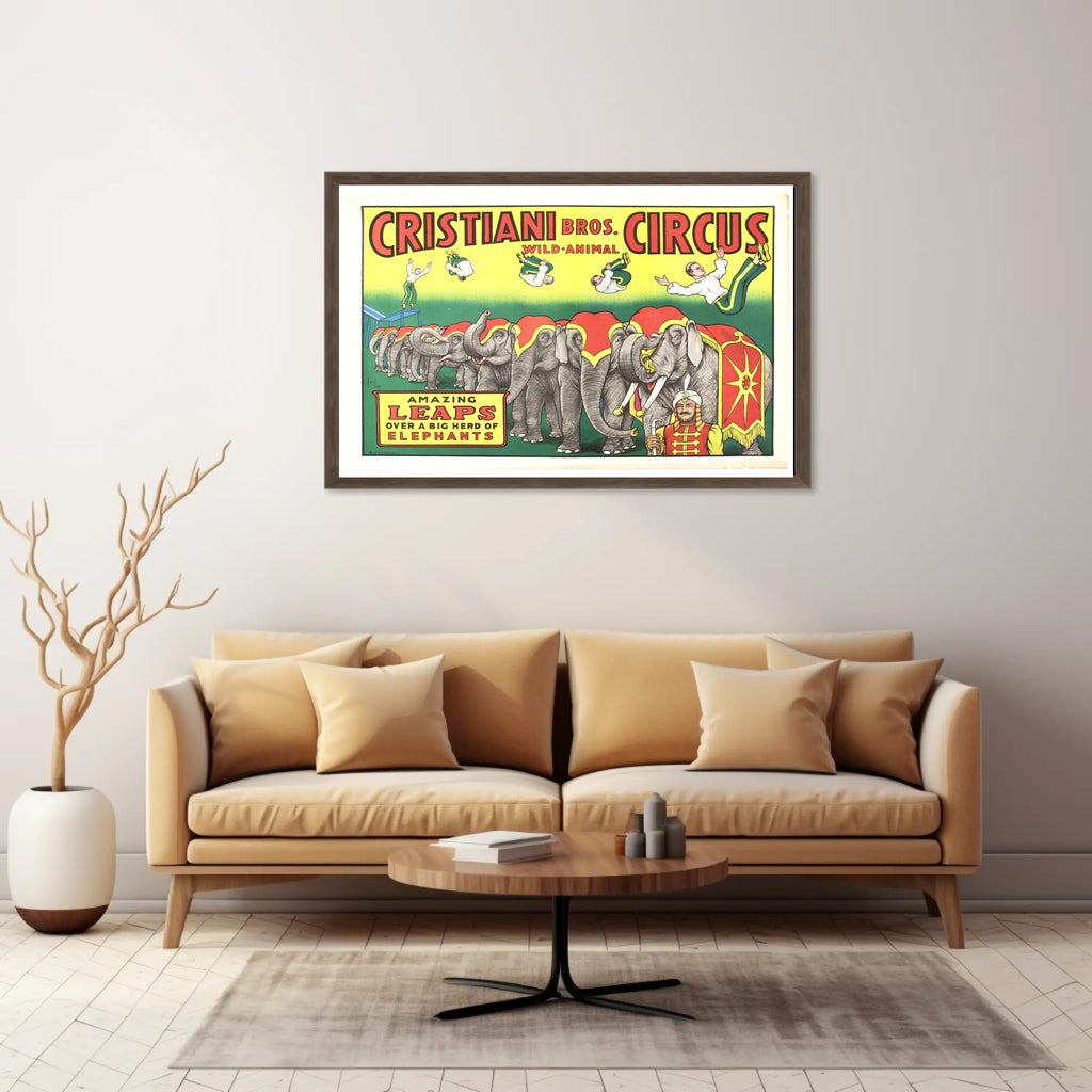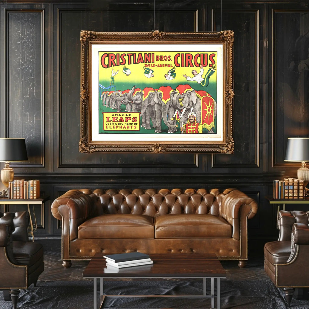 Add the Cristiani Bros. Wild-Animal Circus Poster to your collection and elevate your decor with a timeless piece of circus history reimagined for today's interiors. Order now from PosterGoat and make your wall the main event.