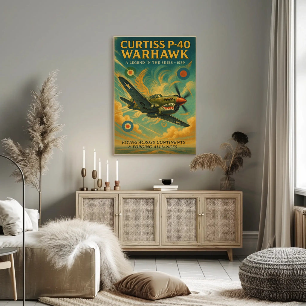 Capture the spirit of vintage aviation with this P-40 Warhawk: A Legend in the Skies poster. This art print blends historic charm with modern wall-ready aesthetics, making it an eye-catching centerpiece for decor lovers and wanderlust-filled spaces.