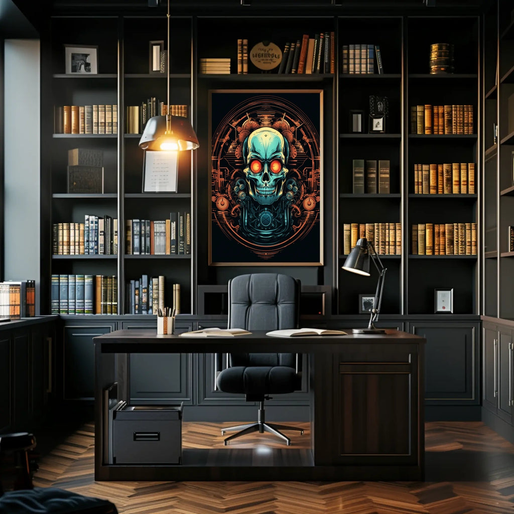 Immerse your space in futuristic artistry with the Cybernetic Skull Art Poster. This striking print blends mechanical intrigue with scenic vibes, appealing to decor lovers and wanderlust souls who crave bold, conversation-starting wall art.