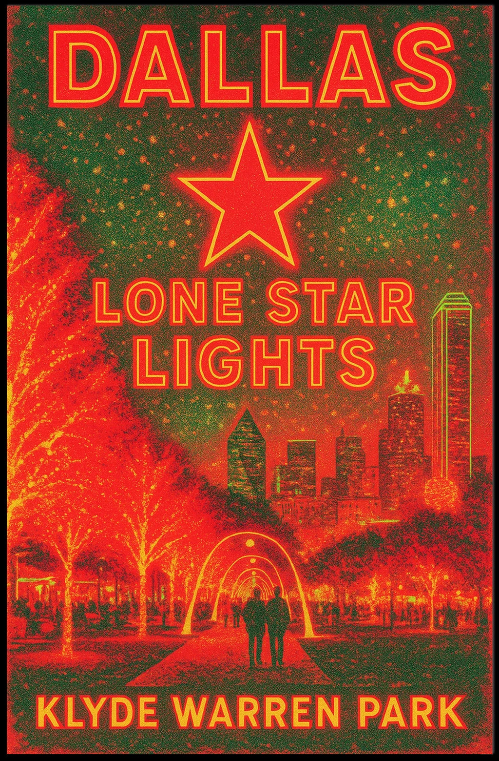 - Detailed design highlighting the iconic Dallas skyline illuminated by Lone Star Lights