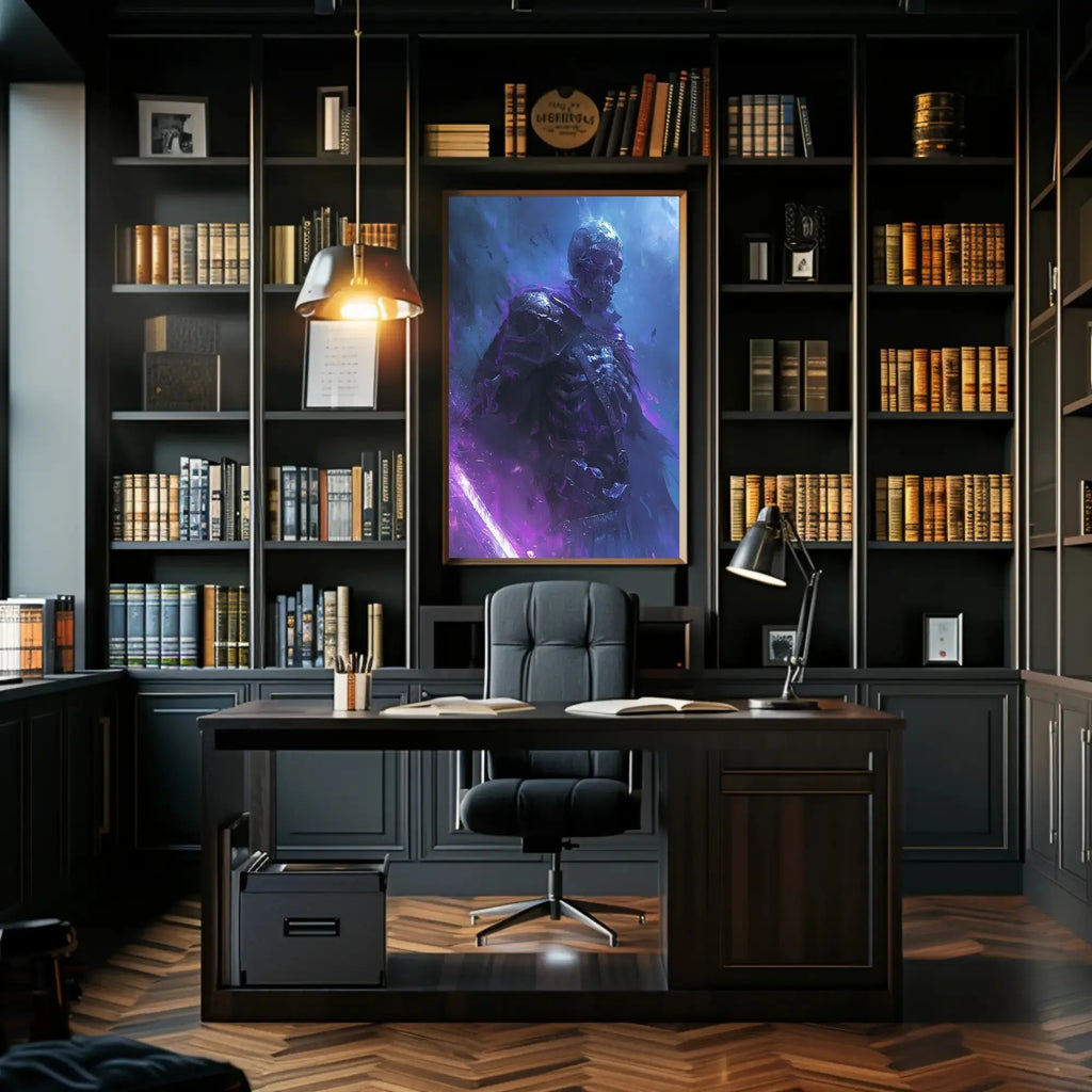 Bring home this dramatic dark fantasy poster to transform your space with a powerful, otherworldly presence. Order your PosterGoat print now and let the Skeletal Warrior guard your walls.