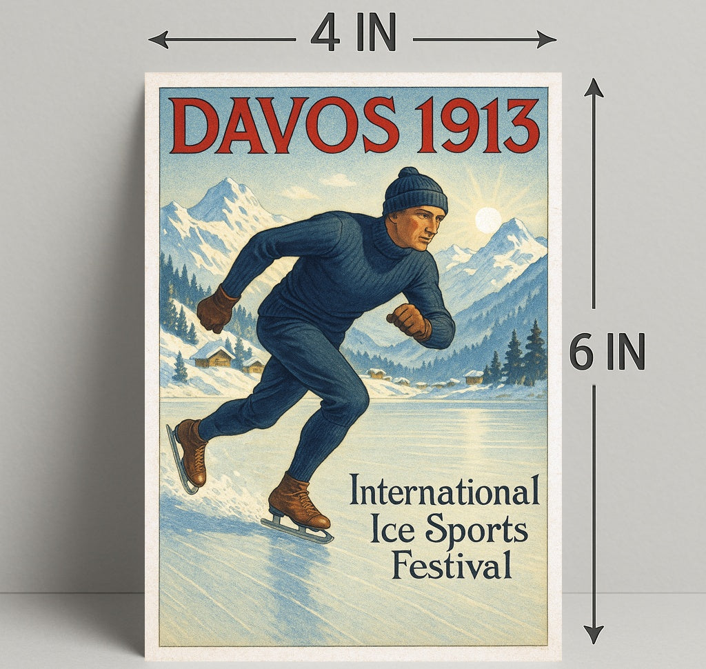 Bring historic alpine adventure to your walls today. Add the Davos 1913 International Ice Sports Festival Poster to your collection from PosterGoat and transform your space with classic winter-sport flair.