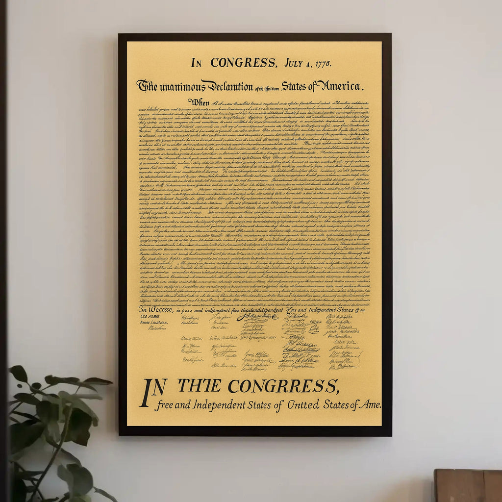 Bring a piece of American history into your home with the Declaration of Independence Poster from PosterGoat. This museum‑style art print recreates the iconic parchment, fine script and signatures in a minimalist, vintage aesthetic that complements modern and traditional decor alike.