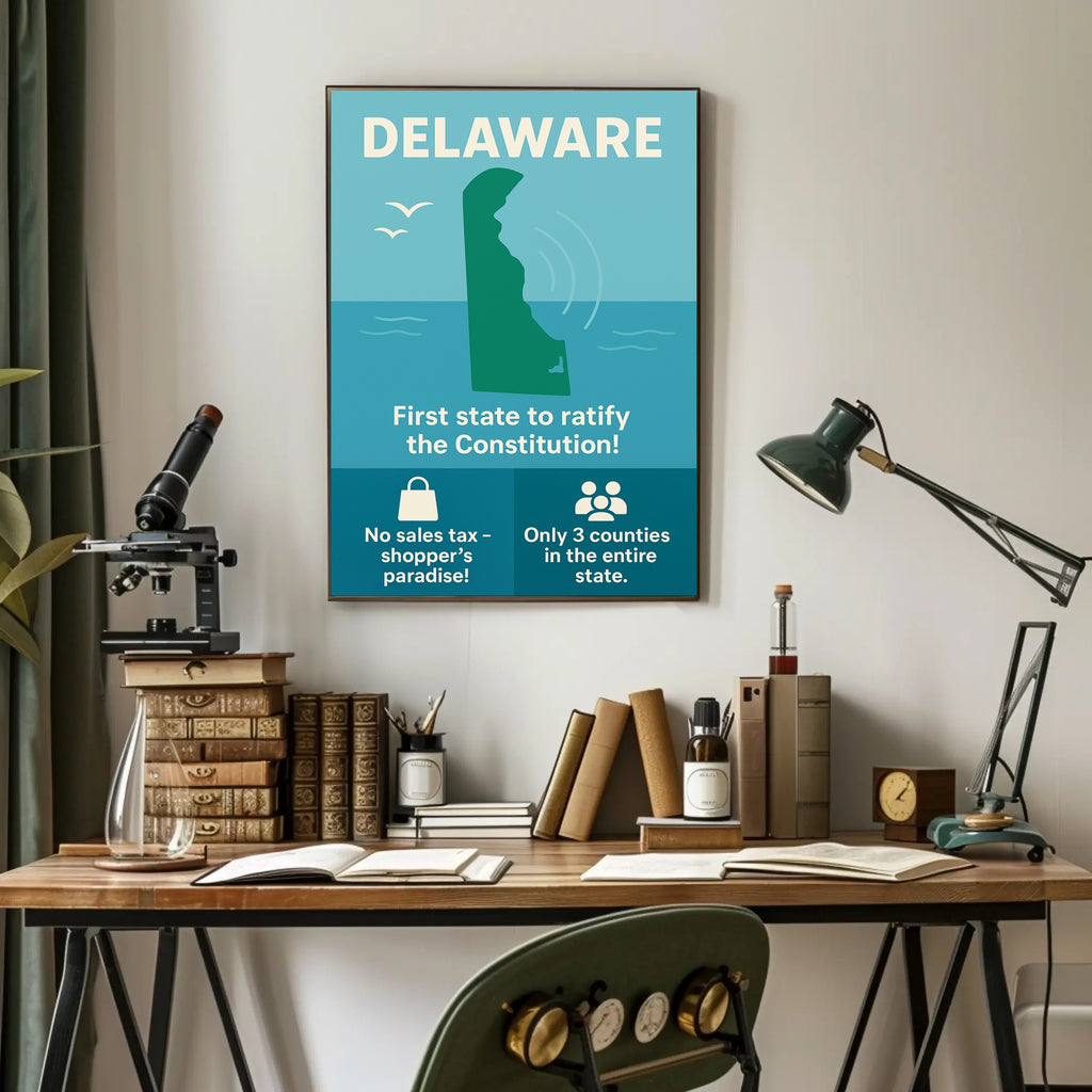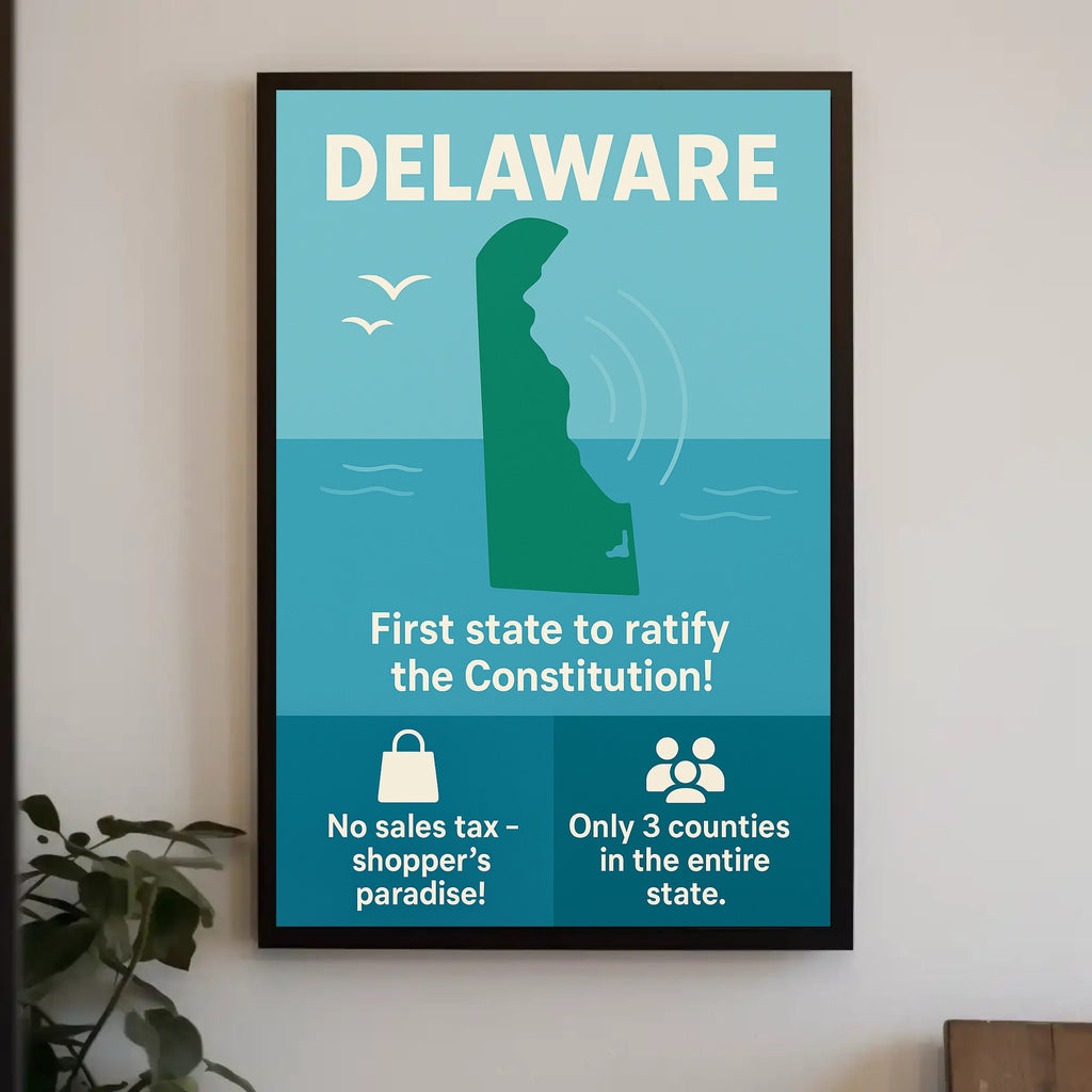 - Unique Design: Features an eye-catching depiction of Delaware, showcasing its iconic outline and vibrant colors that draw attention.