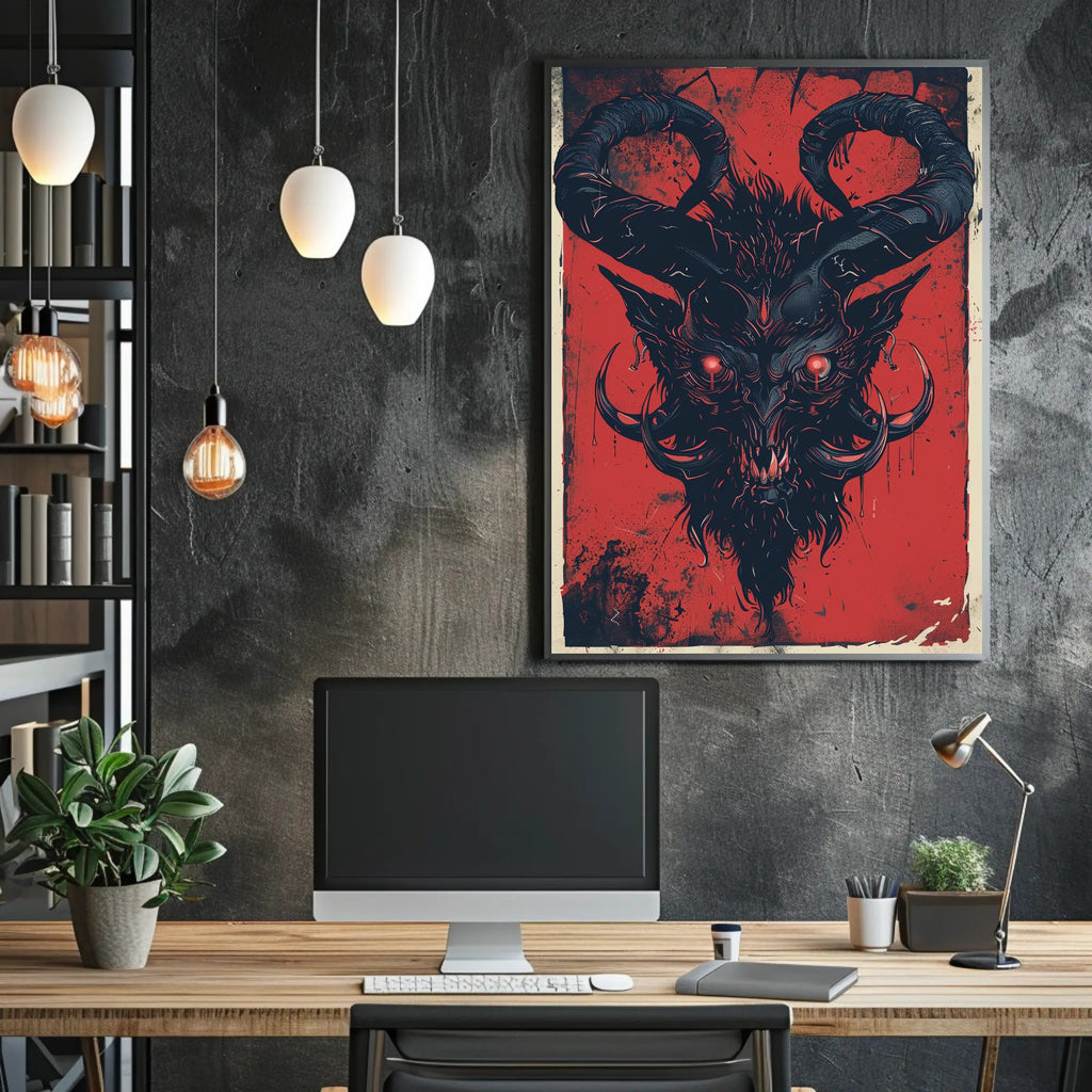 Designer style: Pop Art influence with a dark, cinematic twist — part of PosterGoat’s Art & Aesthetic collection and categorized under poster_subtheme: demon, visage, wall art.