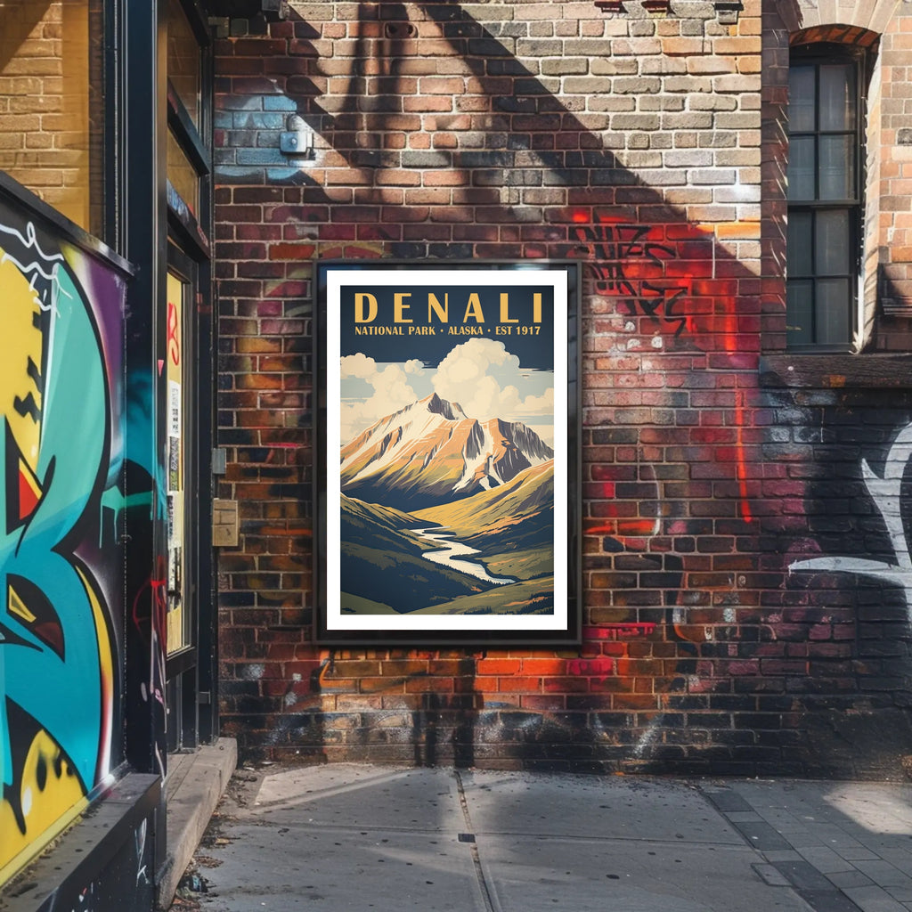 Denali National Park Vintage Poster — a PosterGoat original that brings Alaska’s iconic peaks and sweeping tundra into your home with vintage travel-poster charm.