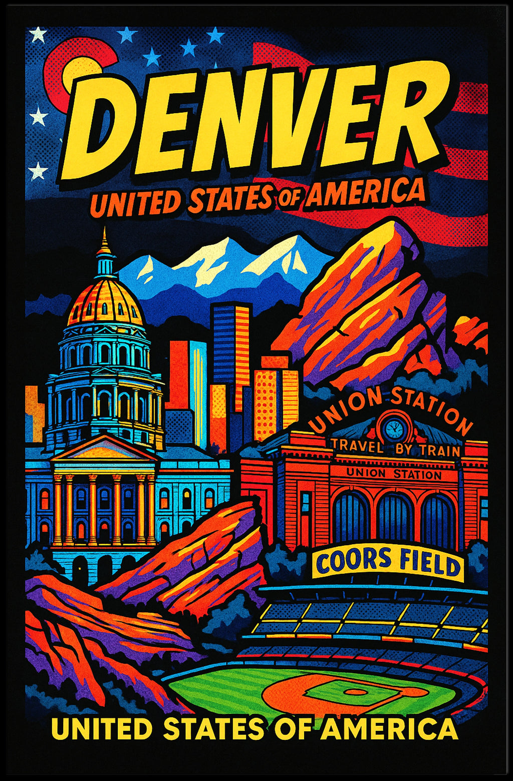 - Iconic Imagery: Features notable landmarks like Coors Field and Union Station, perfect for celebrating the spirit of Denver.