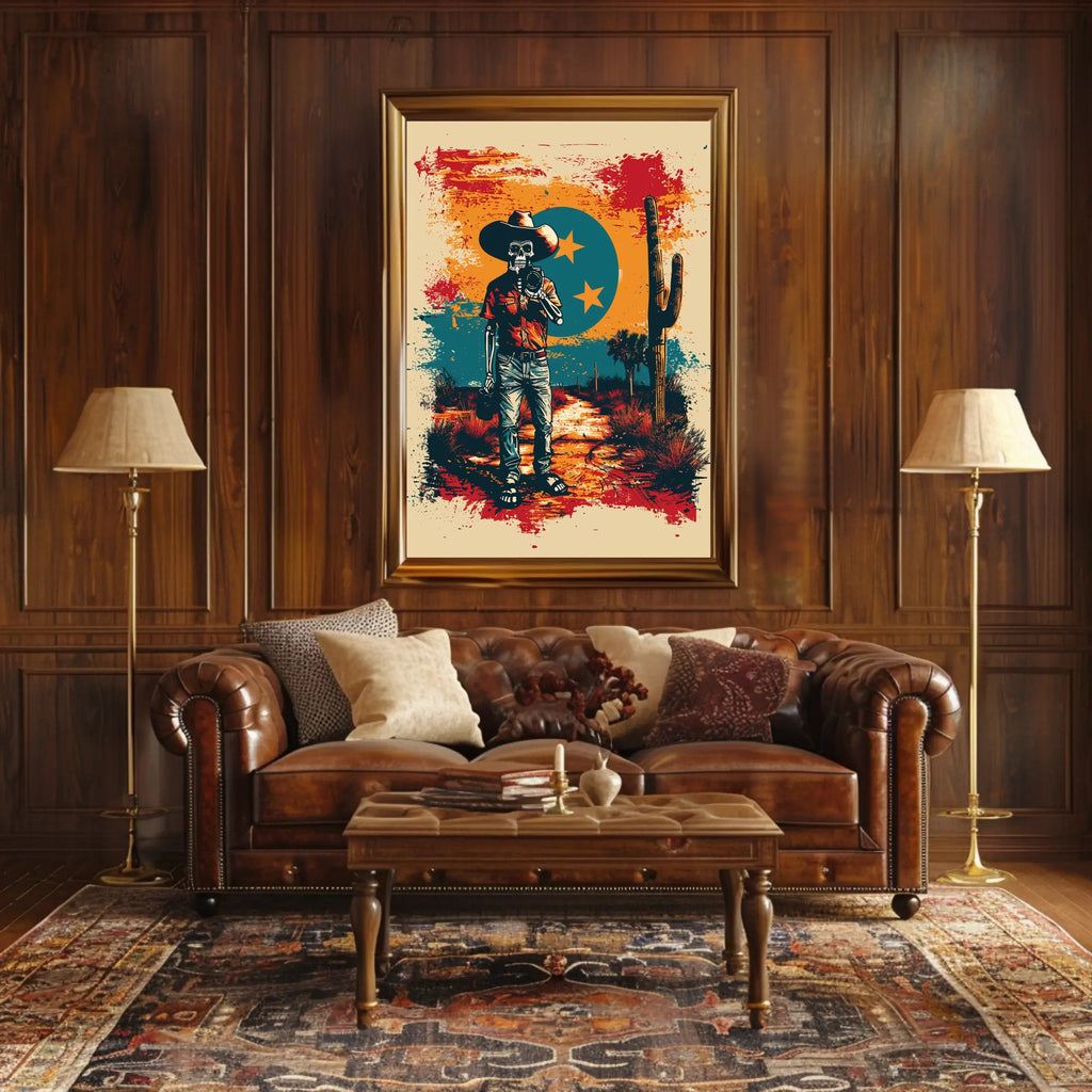Artist & style: From Artistry Co., merchandised by PosterGoat; modern Pop Art styling with a desert/cowboy/skeleton subtheme that complements eclectic, boho, and western decor.