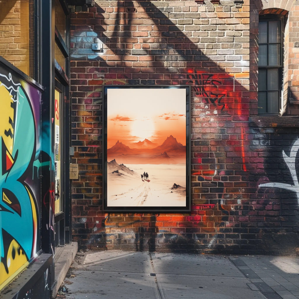 Themes & style: Poster subtheme: desert, sunset, journey; Styles: Minimalist — ideal for scenic wall art and meaningful gifts or souvenirs.