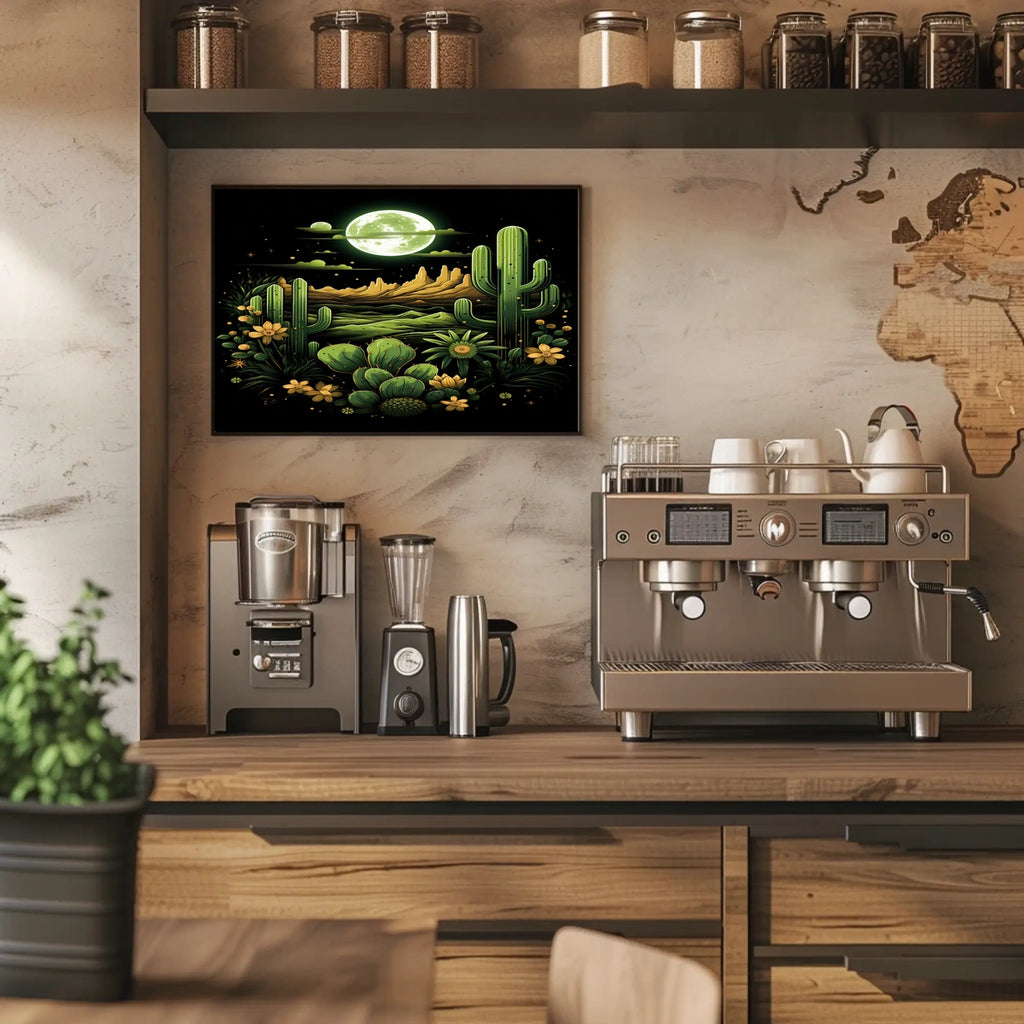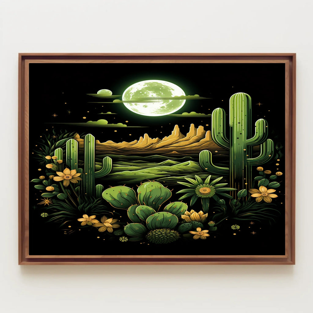 Conversation-piece artwork that connects landscape, nature, and mood—bring the Desert Moonlit Landscape Poster into your home, classroom, or office today and let your walls tell a powerful story
