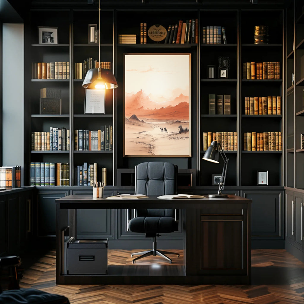 Striking visual storytelling: Layered mountains, soft gradients, and delicate sand textures create depth and a sense of endless space that draws the eye.