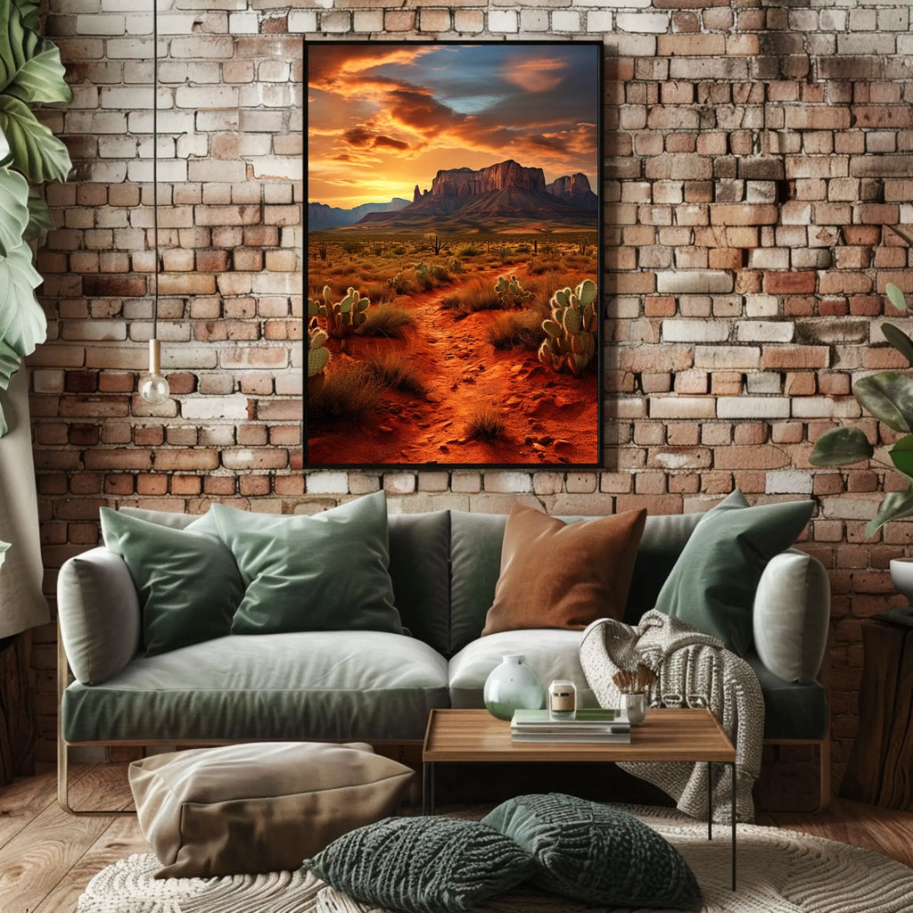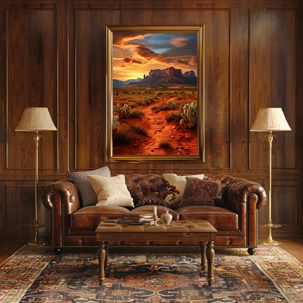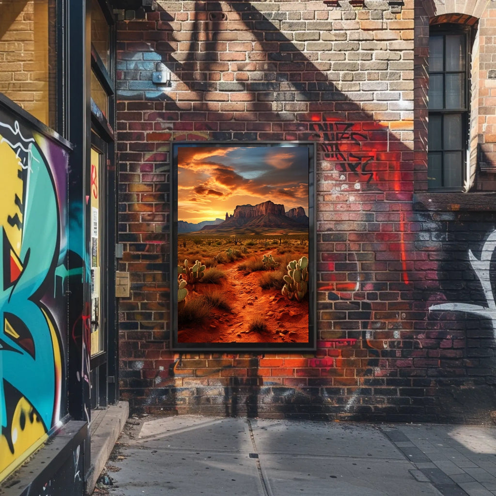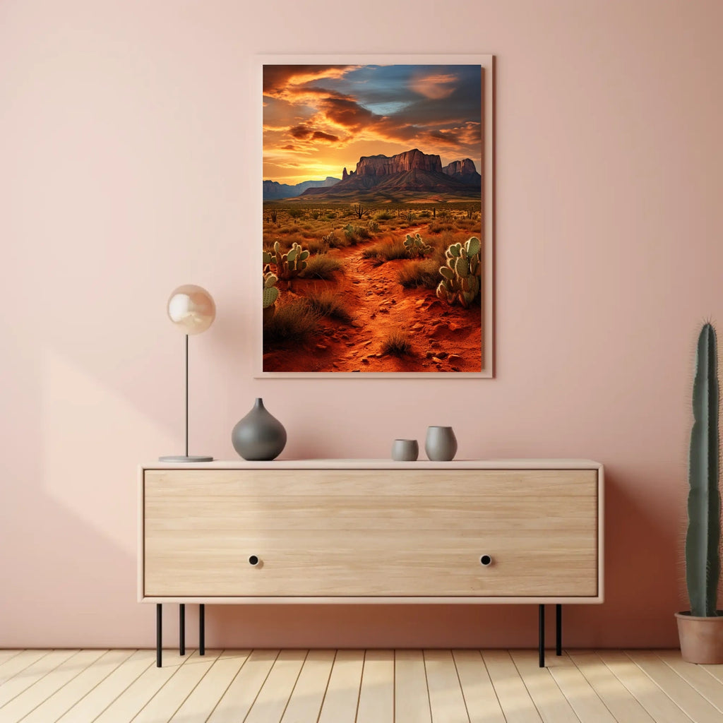 This poster captures the essence of Desert Sunset Majesty. Designed for decor lovers and wanderlust spirits, this art print adds charm to any room with visuals inspired by real-world scenery.