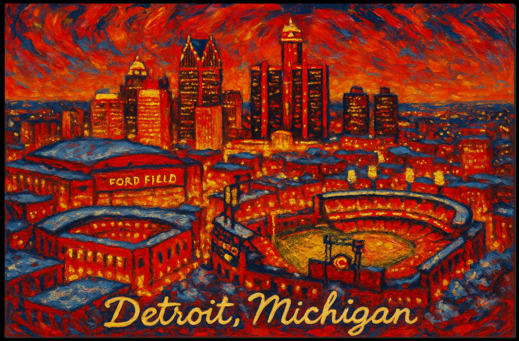 Printed with precision and designed to inspire, this Detroit cityscape poster brings a piece of Michigan’s vibrant urban landscape into any environment—home, classroom, or workplace. Add it to your wall art collection and start conversations about architecture, culture, and city life.
