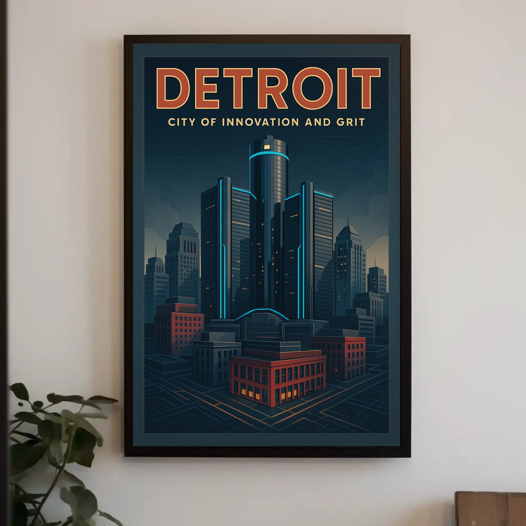 Bring this futuristic Detroit cityscape home today — order now and transform your wall into a celebration of modern architecture and metropolitan design.