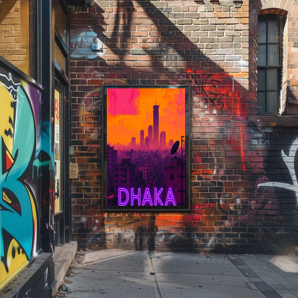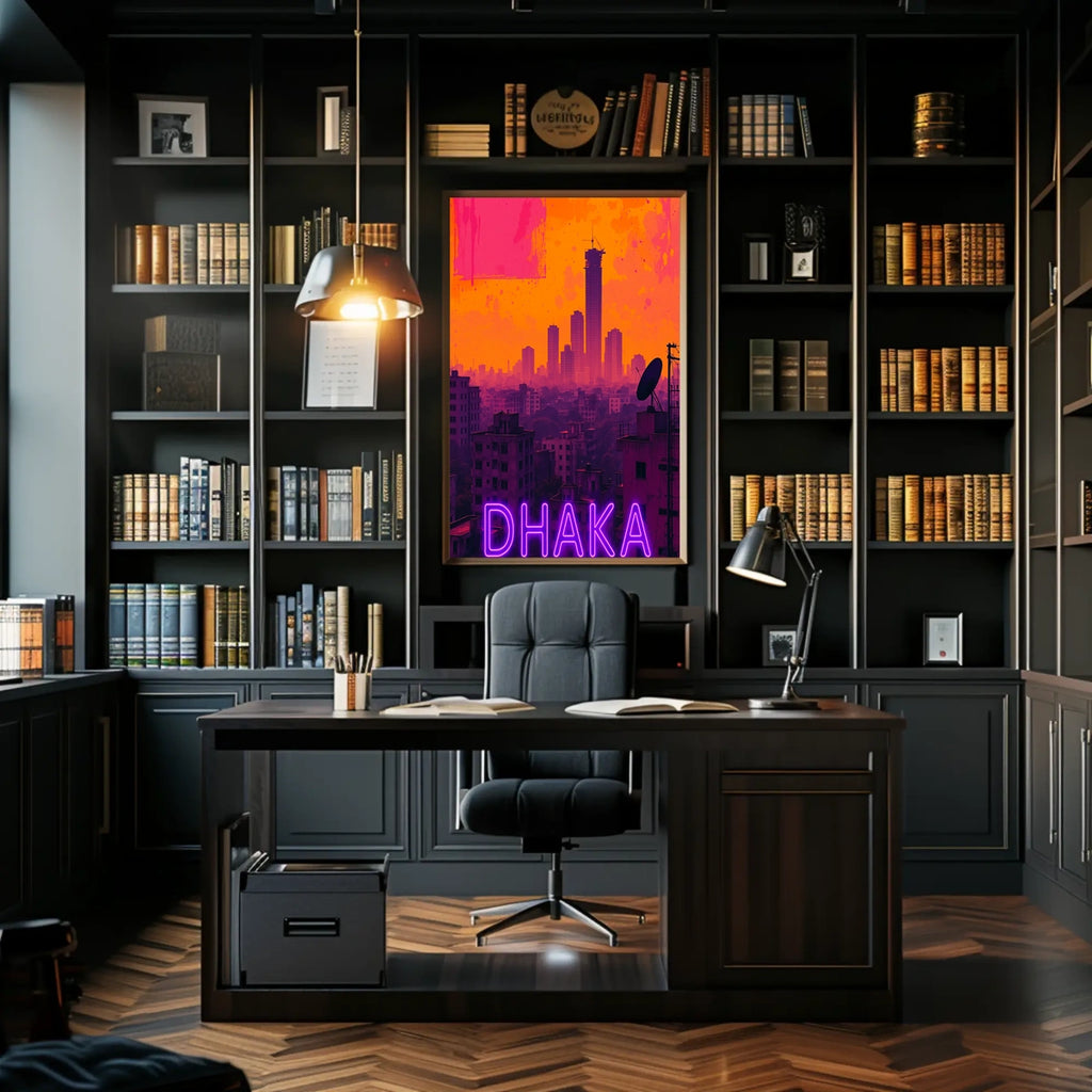 Capture the vibrant silhouette of Dhaka with this Dhaka Skyline Poster. Crafted for decor lovers and wanderers, this art print brings warm, city-light nostalgia into any room, elevating walls with a touch of urban charm.
