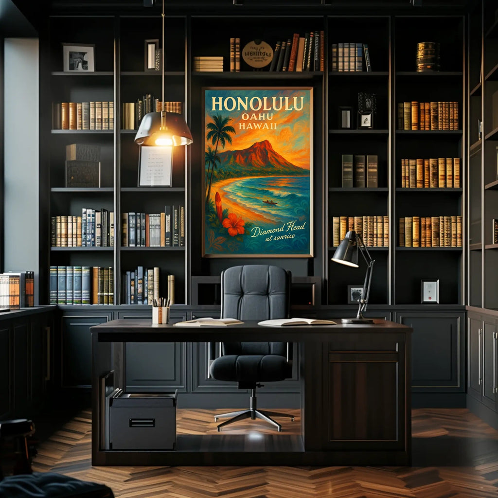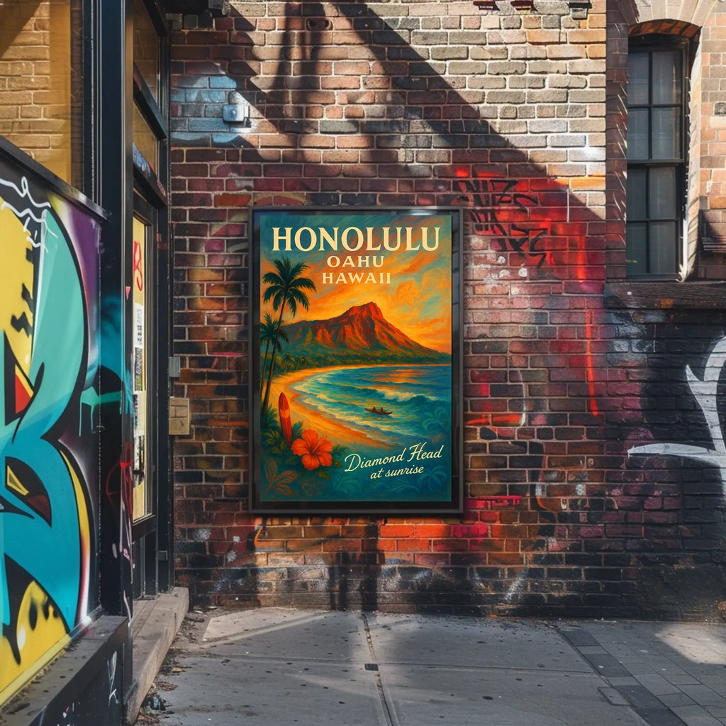 Diamond Head Sunrise Vintage Travel Poster