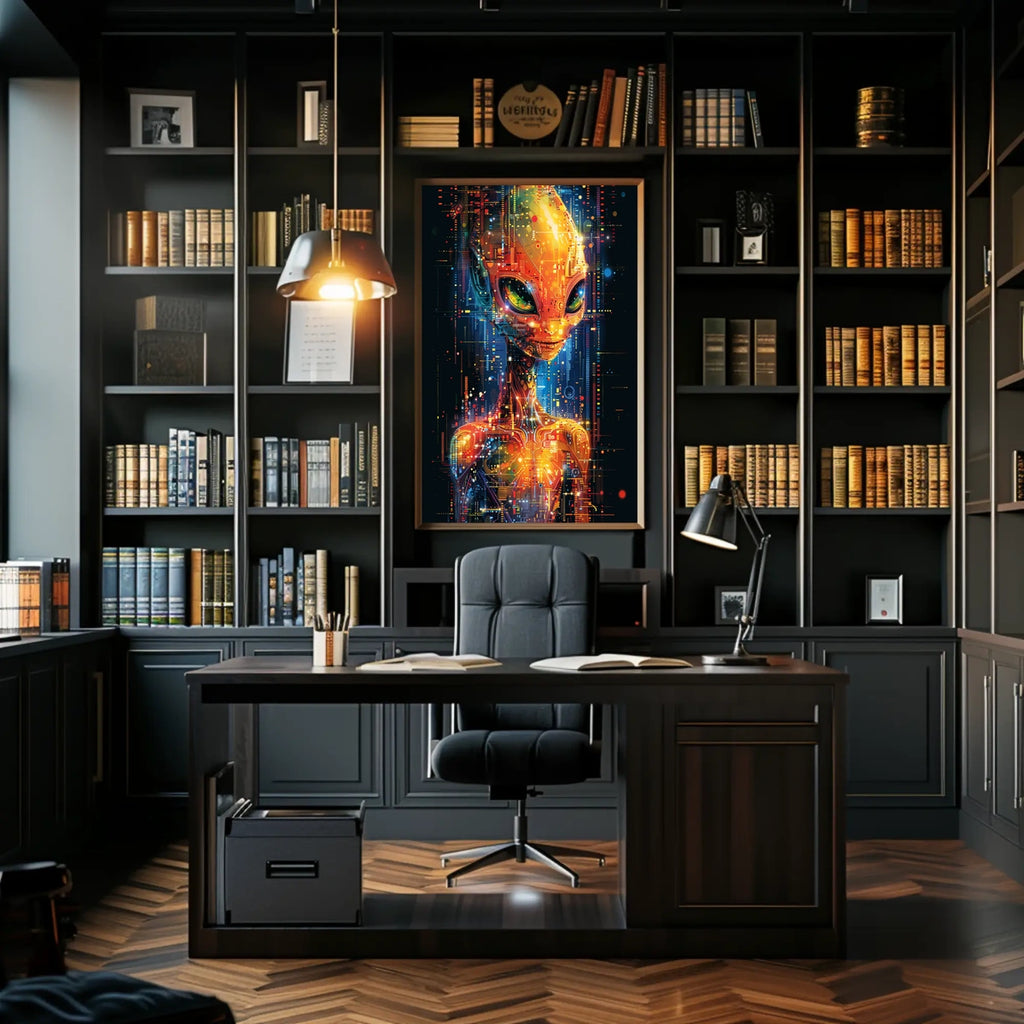 This Digital Alien Visage Poster captures a captivating fusion of sci-fi intrigue and real-world scenery. Designed for decor lovers and wanderlust spirits, it brings a bold, otherworldly atmosphere to any room, turning blank walls into a gallery-worthy conversation starter.