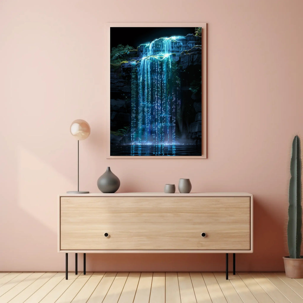 Immerse your space in the tranquil motion of a Digital Waterfall with this art poster. Designed for decor lovers and wanderlust spirits, it blends nature-inspired scenery with contemporary digital aesthetics to elevate any room and spark conversation.