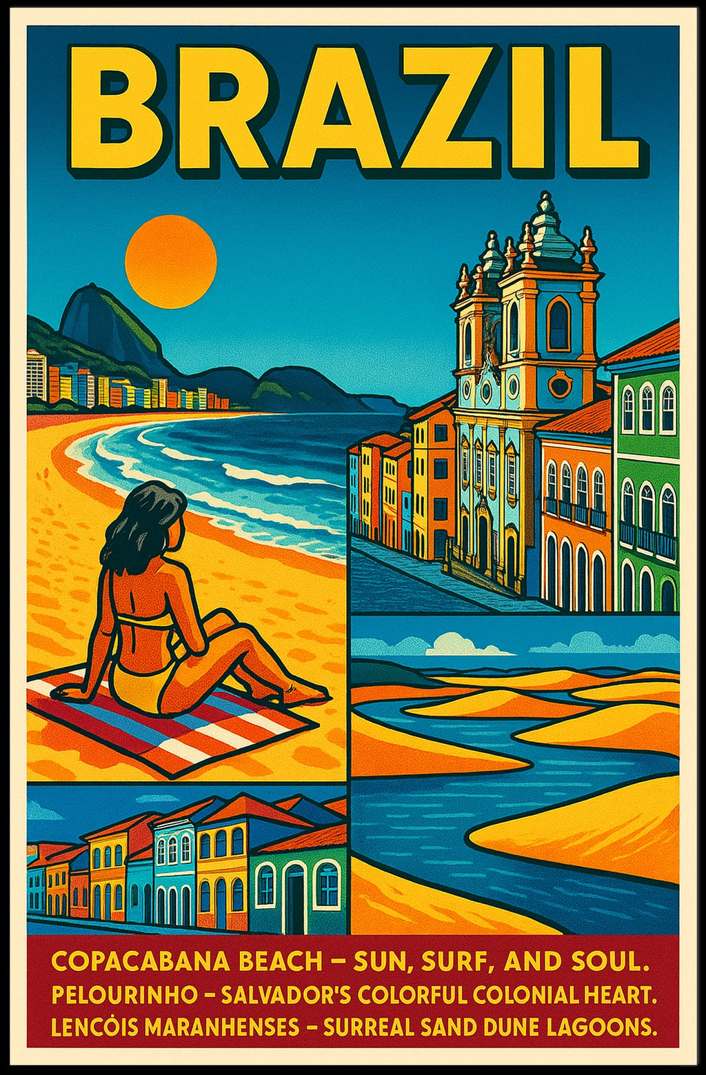 - Printed with precision and made to inspire, this artwork is more than decoration—it’s a conversation piece that connects travel, culture, and style. Bring Discover Brazil into your home, classroom, or office today and let your walls tell a powerful story.