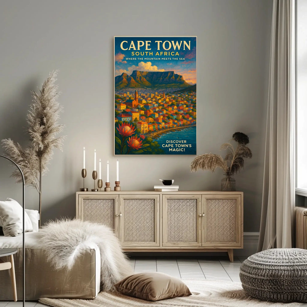 This poster injects travel-inspired charm into any space, elevating mood and conversation. Its durable design makes it a reliable wall accent for years to come, whether youโre decorating a first apartment or a seasoned home. Add this captivating piece to your collection today and invite Cape Towns magic into your everyday life.