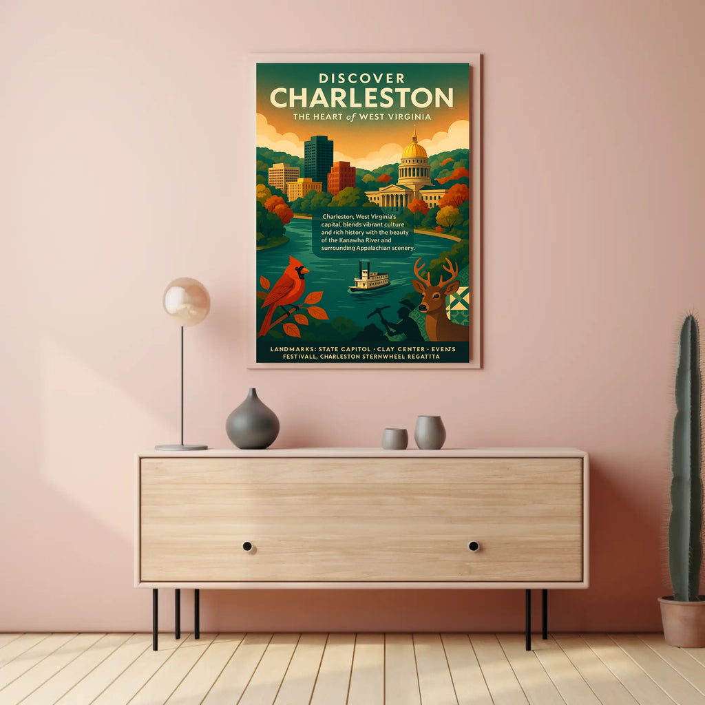 Ready to elevate your space? Add the Discover Charleston Poster by PosterGoat to your cart and bring a timeless piece of West Virginia into your home today.