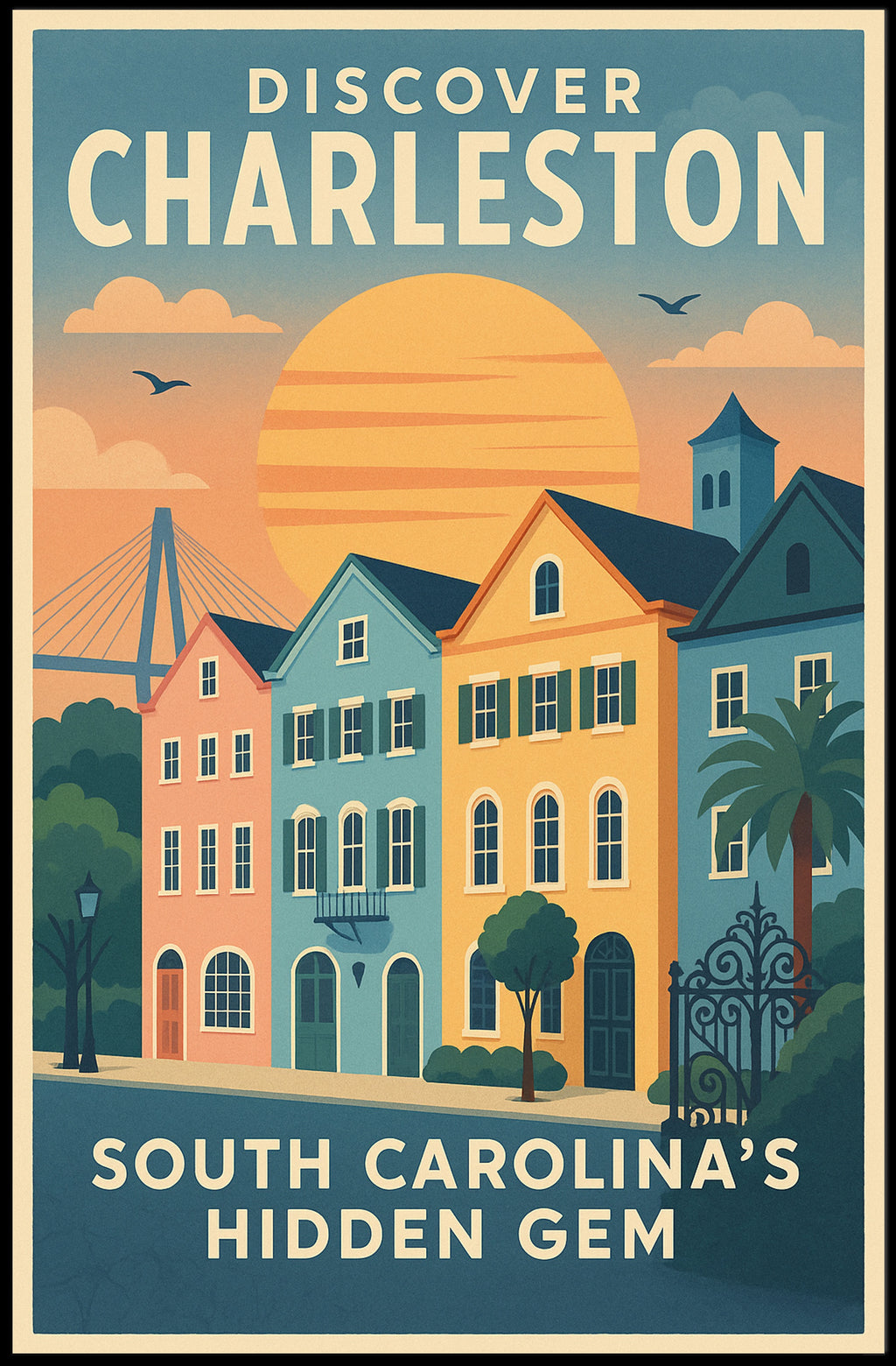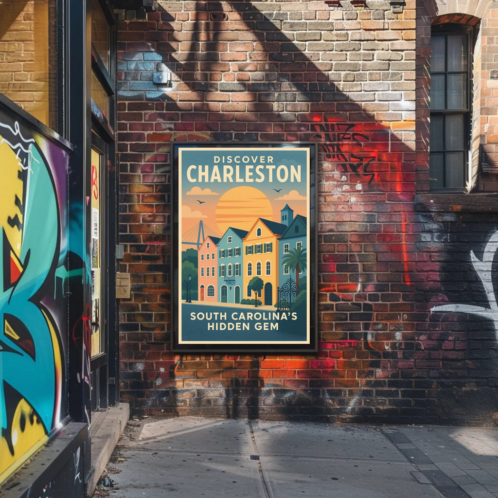 Whether you're decorating a cozy apartment or curating a travel gallery wall, this Discover Charleston Poster adds instant personality and nostalgia to any room. Bring home a piece of South Carolina's hidden gem—add to your cart from PosterGoat today and brighten your space with classic coastal charm.