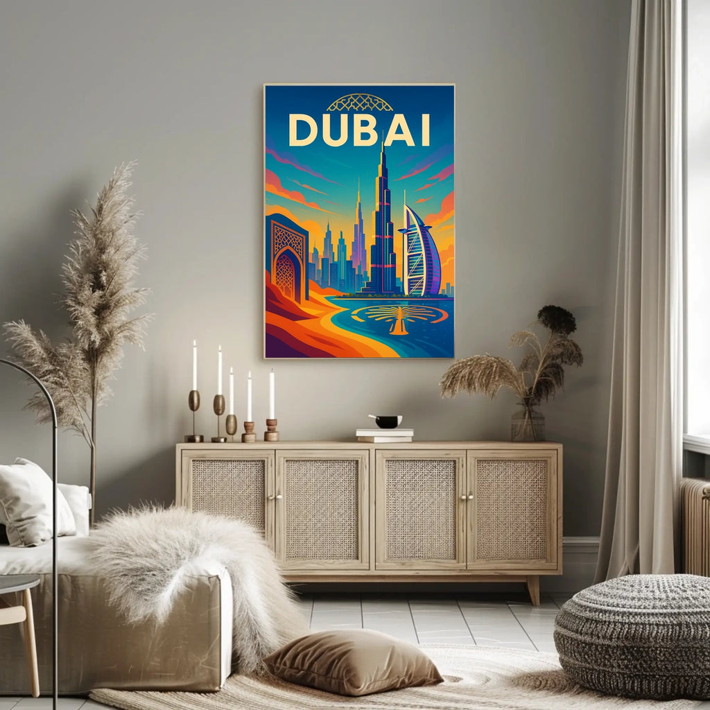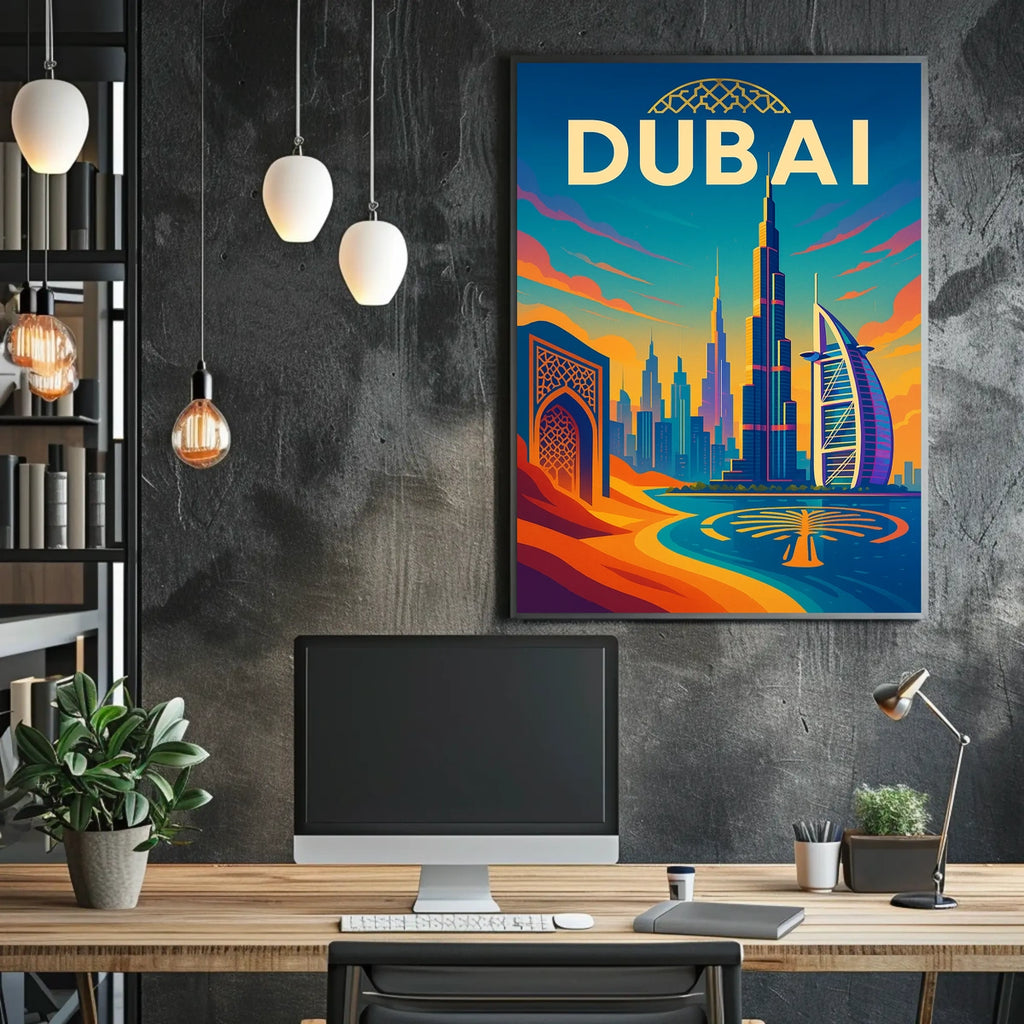 Transform your space with a piece that blends travel, architecture, and art. This poster delivers timeless style and inspiration—order now to bring Dubai's skyline into your home or office.