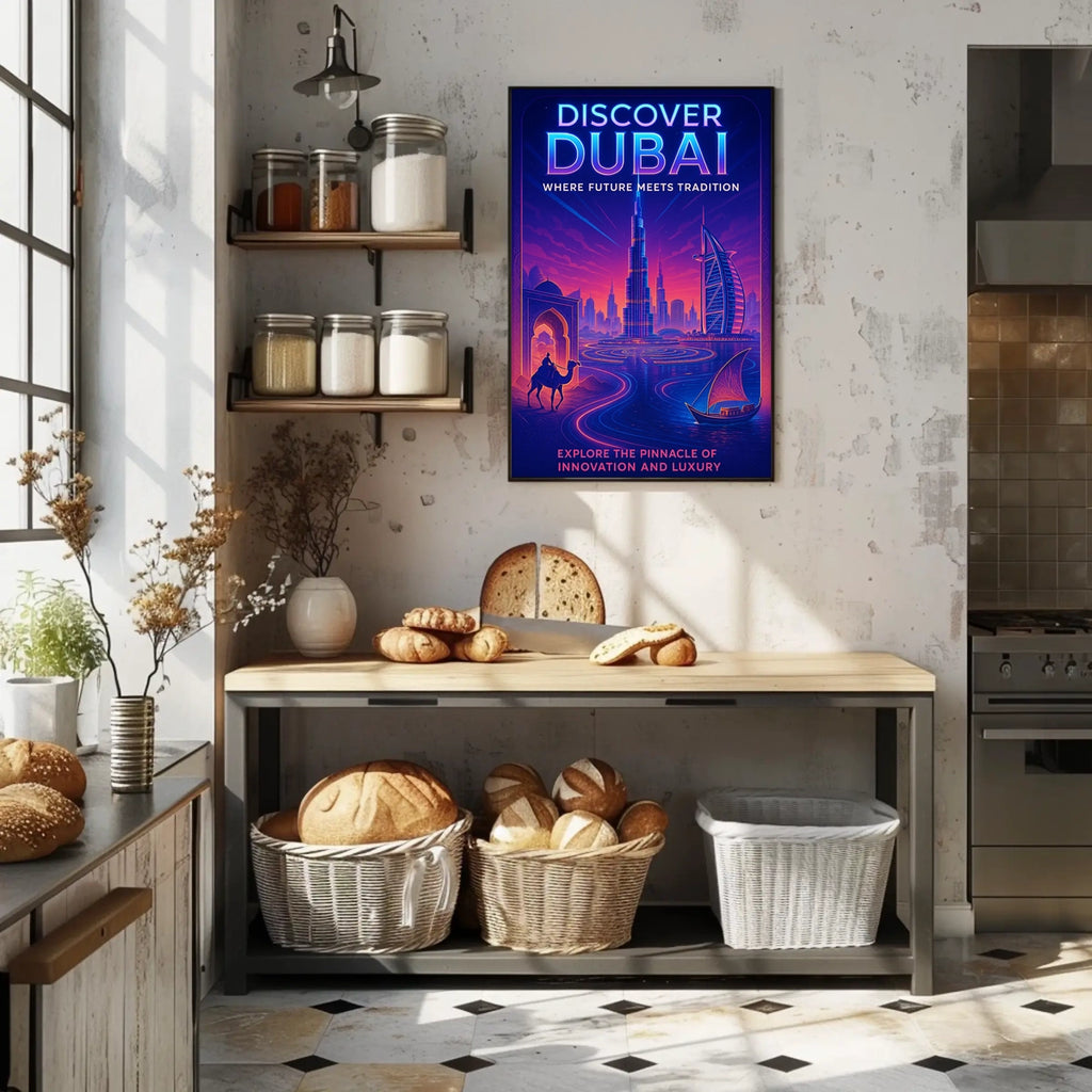 Immerse yourself in the vibrant fusion of innovation and heritage that defines Dubai. This poster captures a city where the skyline gleams with cutting-edge architecture against timeless desert horizons, inviting you to dream big and travel through culture. Perfect for modern living spaces, it adds luxury, inspiration, and a sense of place to any room.