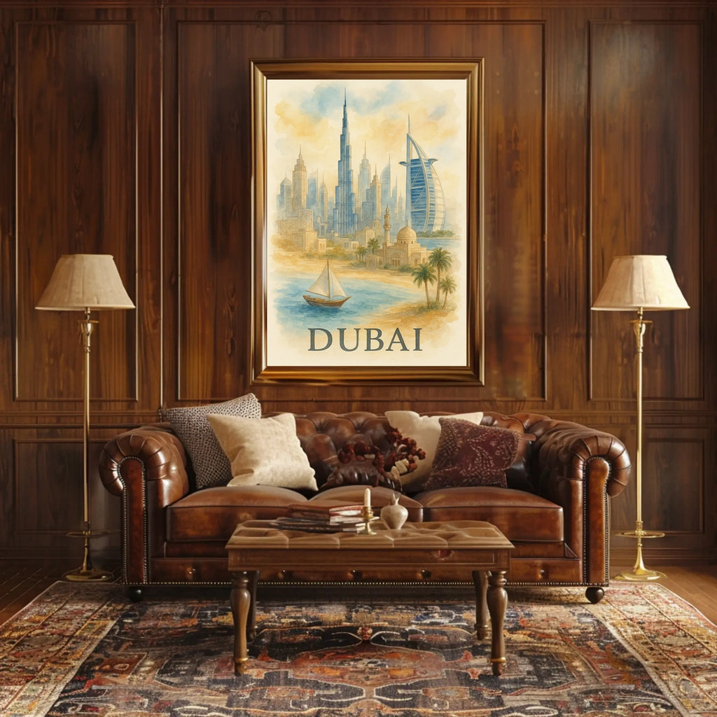 Immerse yourself in the breathtaking cityscape of Dubai with this striking poster. Merging ultra-modern architecture with timeless coastal charm, it celebrates a city that blends ambition with elegance. Perfect for travelers, design lovers, and anyone who cherishes urban grandeur. Ideal for galleries, apartments, or office spaces seeking an aspirational, cosmopolitan vibe.