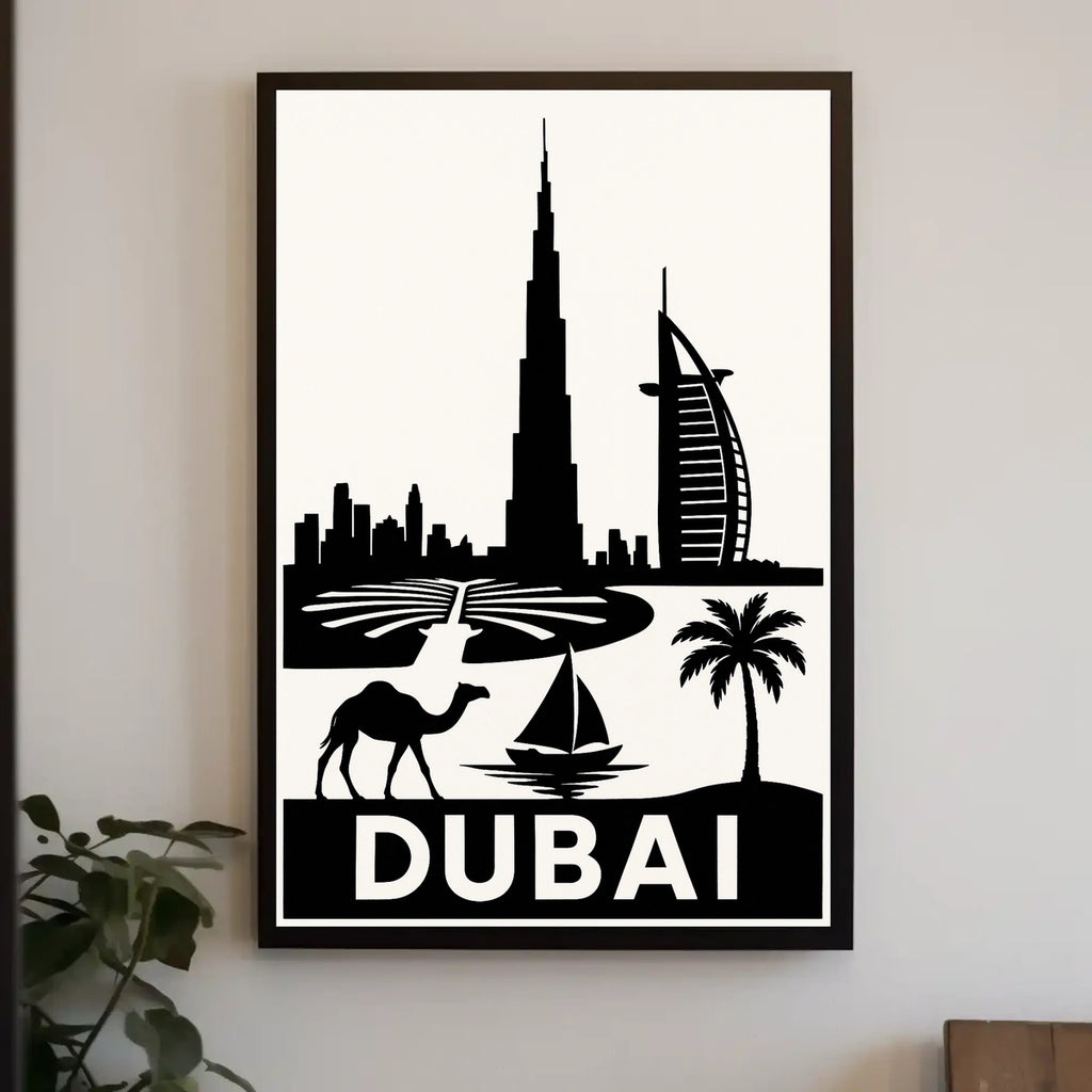 Capture the allure of Dubai with this striking poster that blends iconic architecture and vibrant culture. From the soaring Burj Khalifa to the sail-like Burj Al Arab, this artwork brings the city’s modern energy into any space.
