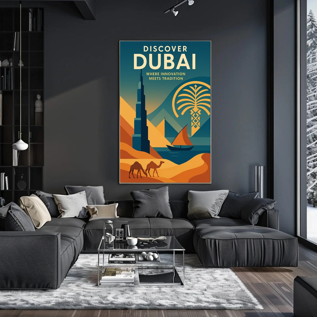 Immerse yourself in the dazzling allure of Dubai with this captivating poster. Witness a cityscape where futuristic architecture seamlessly intertwines with the rich cultural tapestry of the past. Perfect for dreamers of adventure and luxury, this artwork is a tribute to a harmonious blend of heritage and modernity.