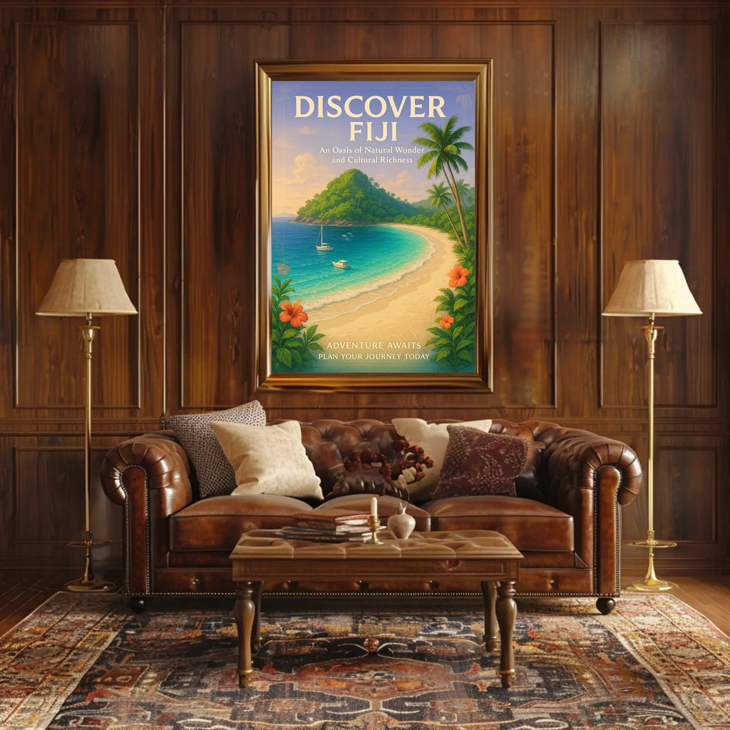 With its Fiji-inspired charm, this poster elevates walls and sparks conversations. It's a simple, affordable way to refresh a space and invite a calm, vacation-like atmosphere. Add to cart today and bring a slice of island beauty into your home.