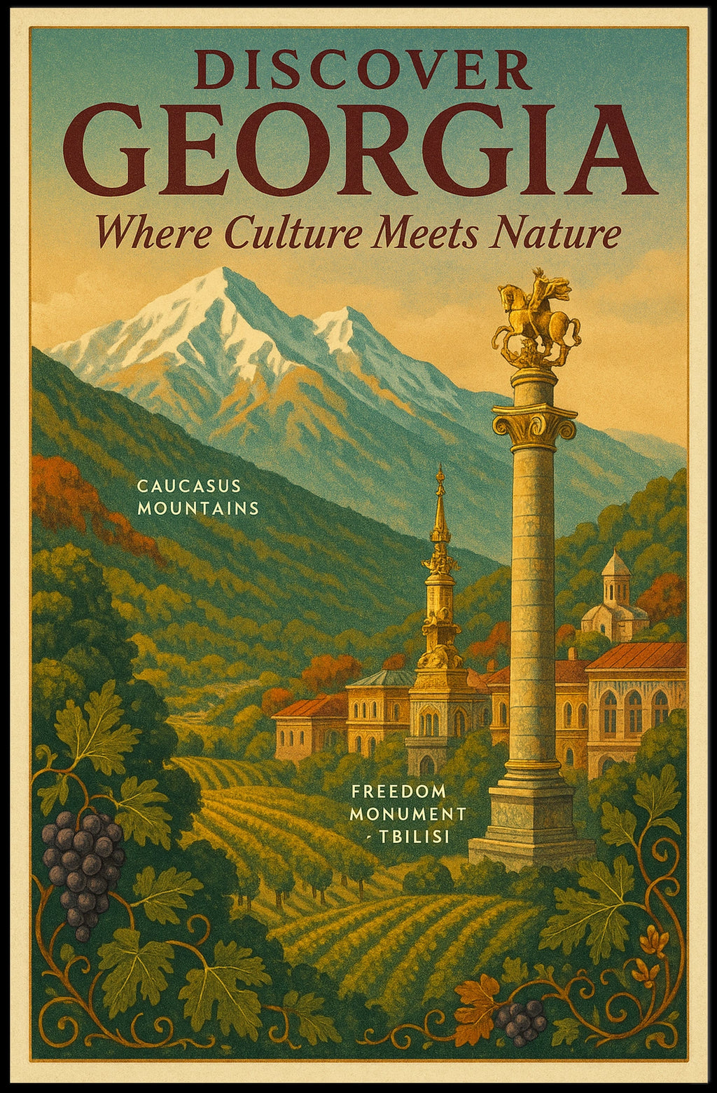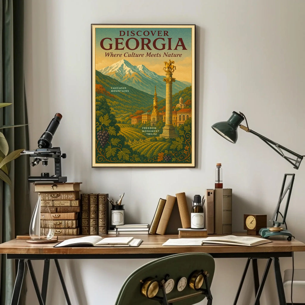 This poster captures the essence of Discover Georgia Where Culture Meets Nature. Designed for decor lovers and wanderlust spirits, this art print adds charm to any room with visuals inspired by real-world scenery.